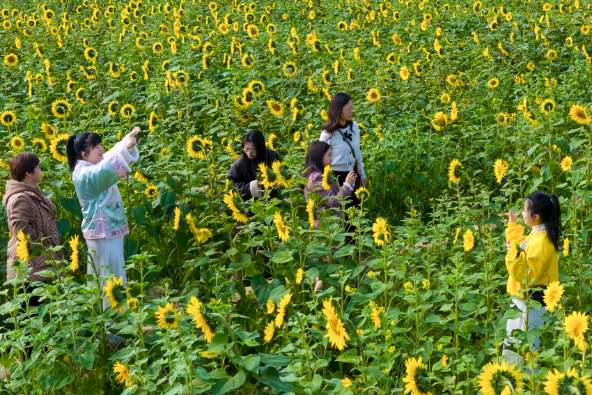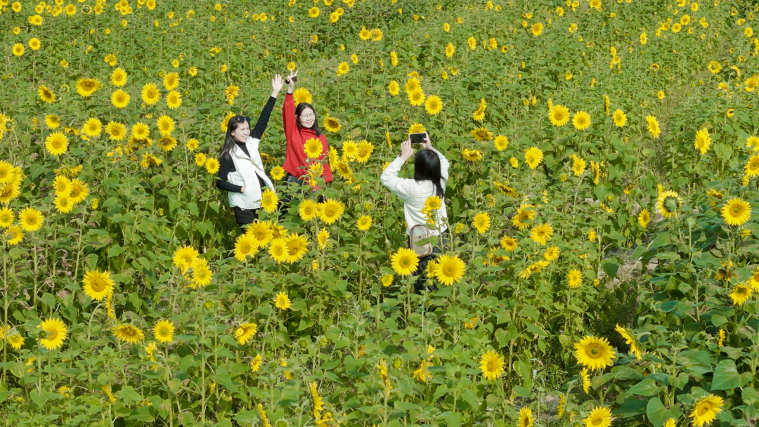 在花海周边,观景平台、休闲步道、广场、美食摊位、农家乐等一应俱全,不仅为市民、游客提供舒适、便捷的旅游体验,还为周边村民带来实实在在的收益。“自从镇政府支持我们村民种这片向日葵,开花之后吸引了不少游客过来参观,我们在旁边摆摊都增加了很多收入。”商户陈开芹告诉记者。