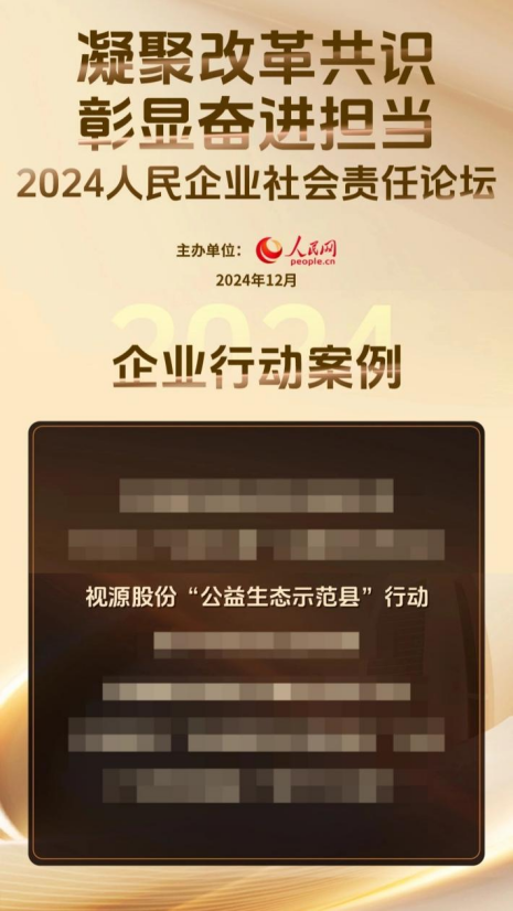 在2024年12月25日人民网主办的“2024人民企业社会责任论坛”中,视源股份凭借其在乡村振兴领域的卓越贡献和创新实践——“公益生态示范县”行动,成功入选该评选,展现了企业在社会责任领域的实践。