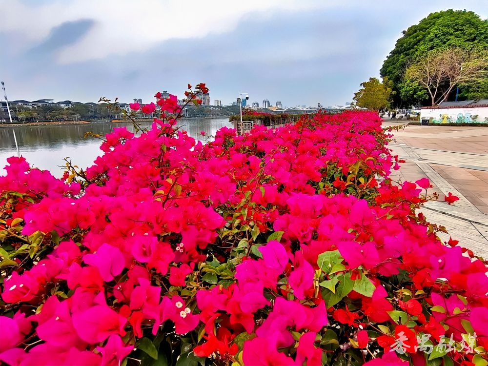 据龙腾广场工作人员介绍,这片花海花期将延续至四月。为给游客带来更好观赏体验,广场加大了养护力度。养护人员定期修剪枝条、施肥浇水。此外,广场内还设有多处簕杜鹃观赏点与休息区,让游客在赏景之余,也能惬意休憩。