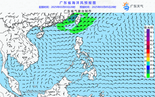 海面大风预报:4日夜间-6日,台湾海峡东北风7~8级阵风9级,我省中东部海面东北风6~7级阵风8级,粤西海面东北到东风6级阵风7级;7日,台湾海峡东北风7~8级阵风9级,我省海面东北风6~7级阵风8级。