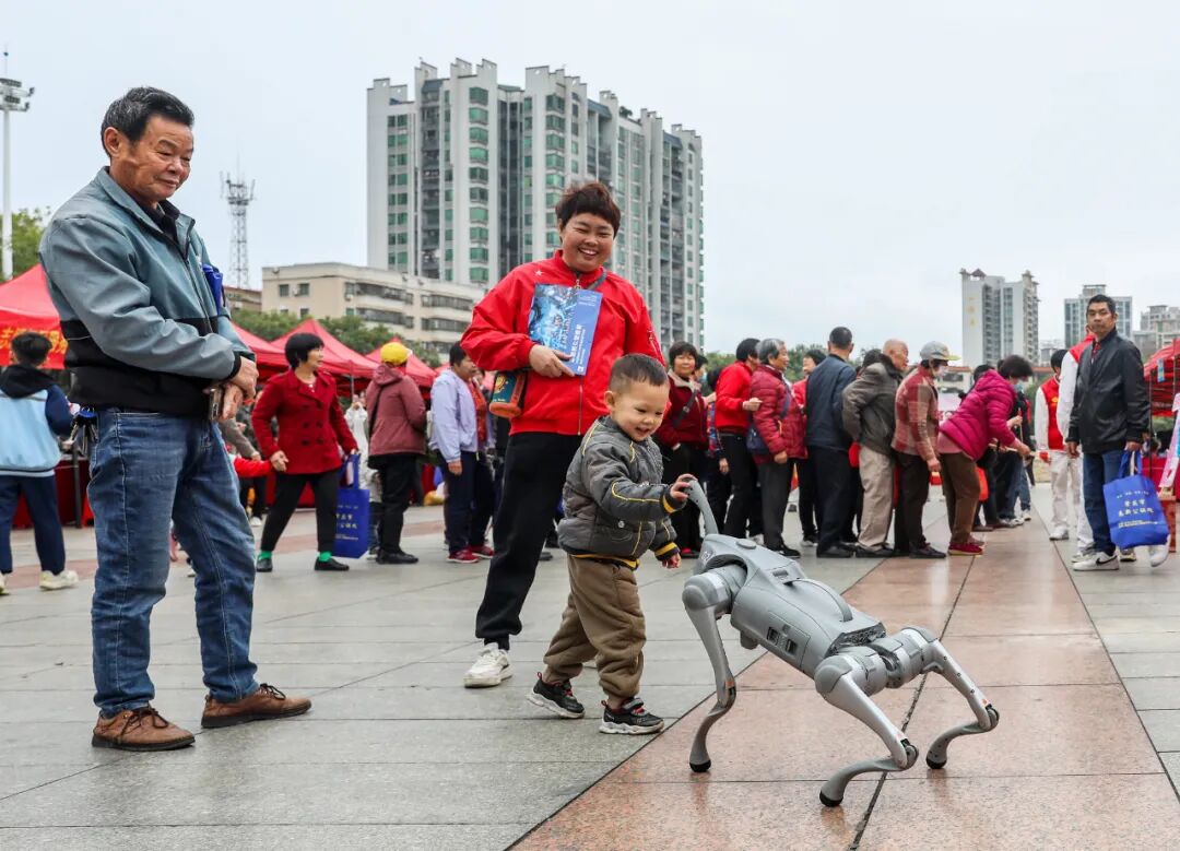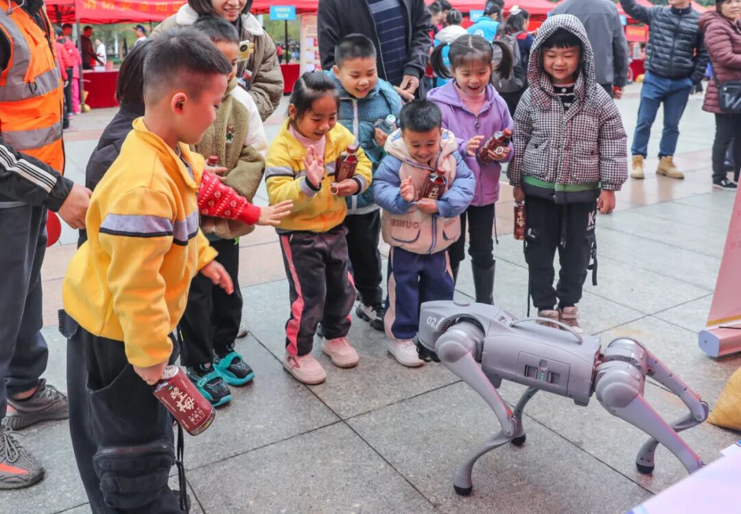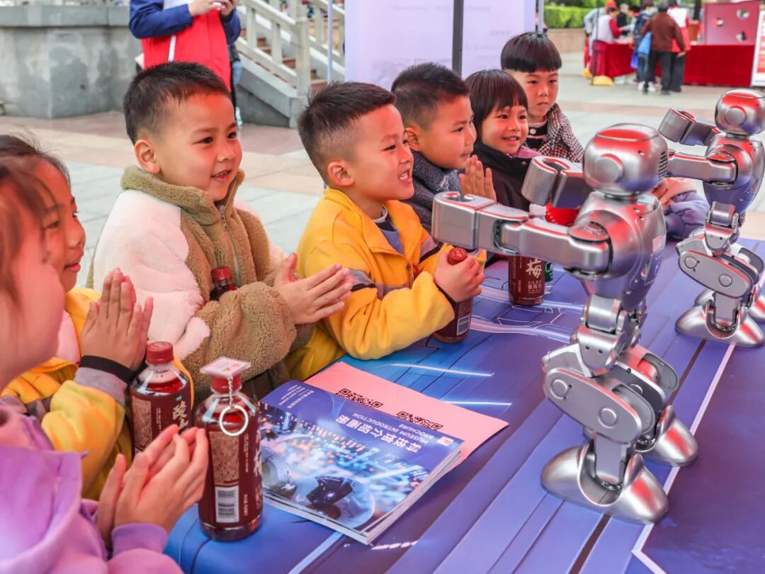 与此同时,人工智能科普展区成为全场亮点,智能机器人灵动的舞蹈表演与机器狗的跳跃翻腾、握手互动吸引大批青少年围观。