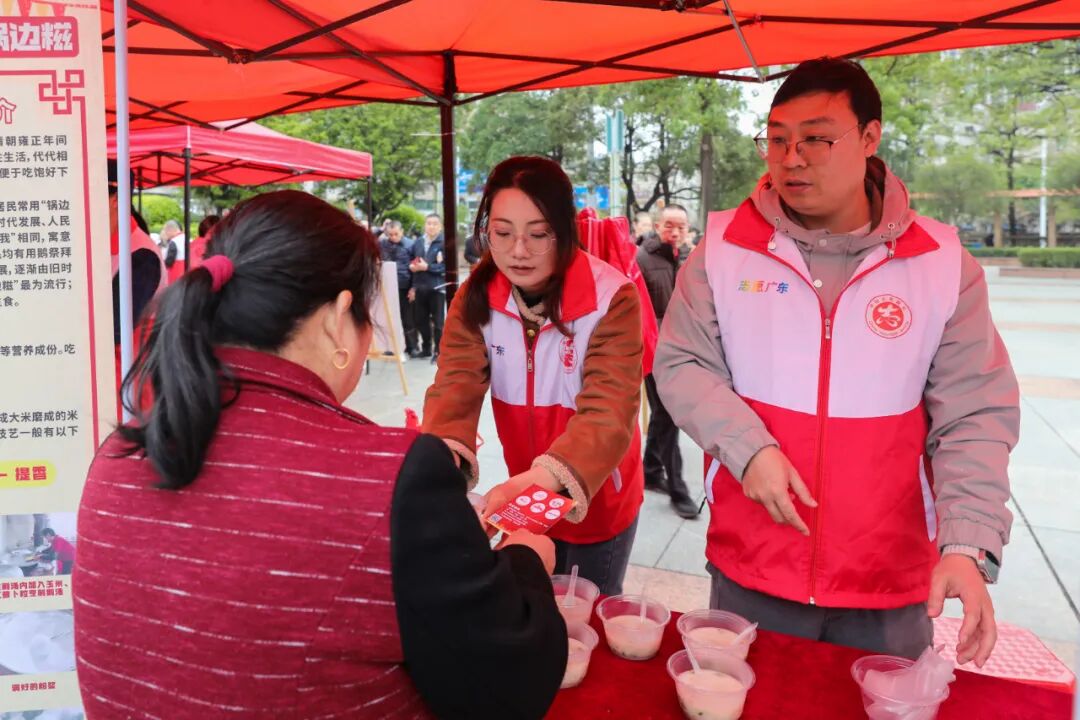 在健康服务区,医护人员为居民免费测量血压、血糖,开展问诊和健康指导,成为中老年群体关注的焦点。此外,非遗美食体验摊位前人头攒动,杨屋鹅汤锅边糍让市民近距离感受非遗美食魅力,爱心义卖和手工DIY活动也吸引了众多亲子家庭参与。