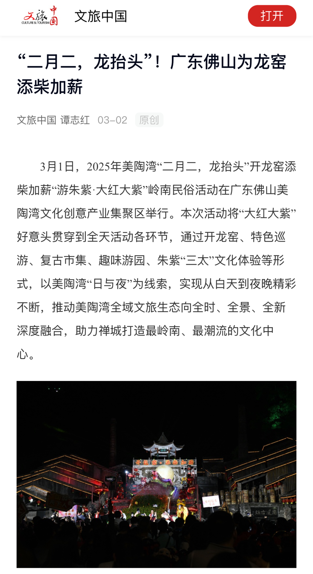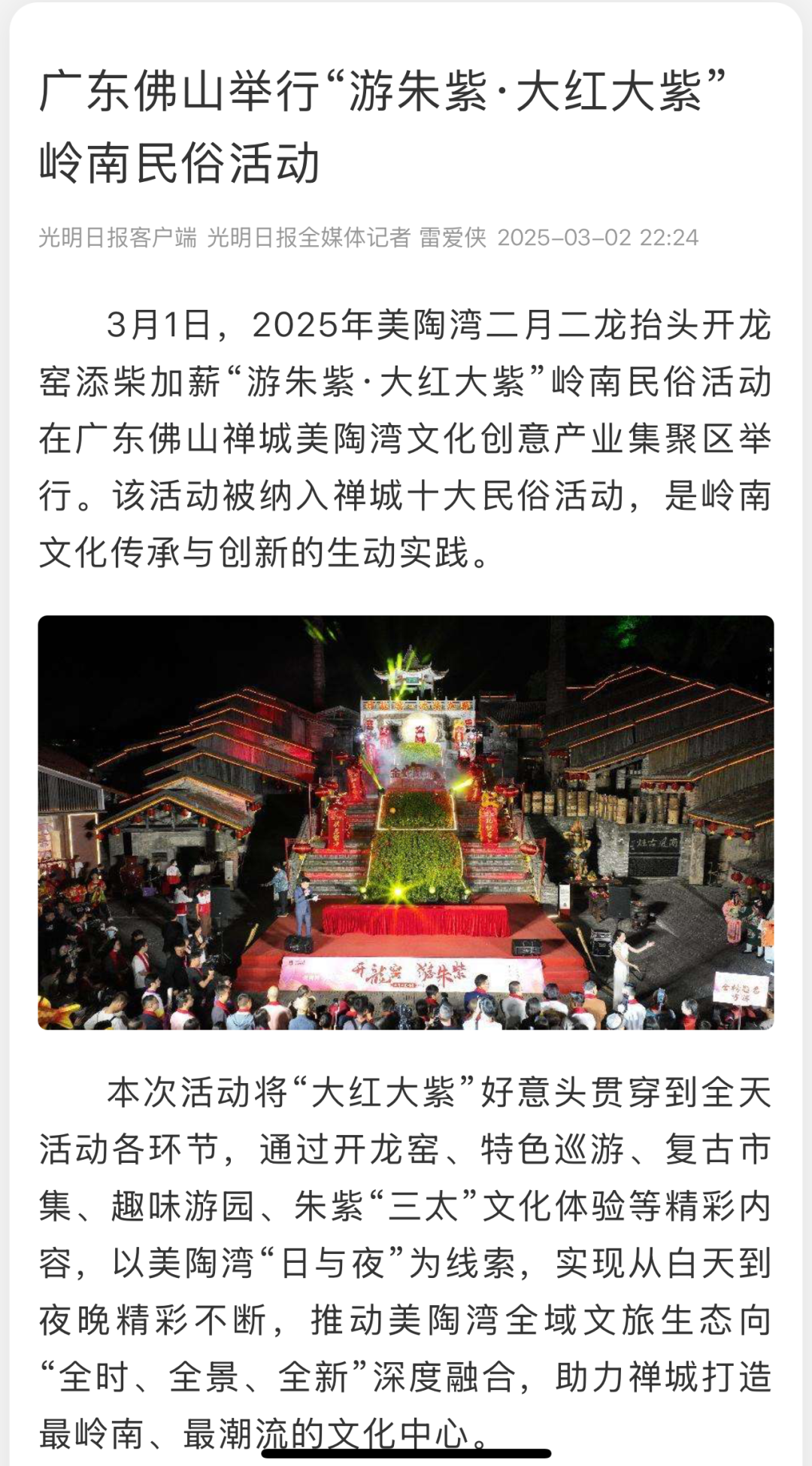 3月1日晚,“游朱紫·大红大紫”系列活动通过佛山石湾、佛山新闻网、知酒传媒、阳春市融媒体等多个平台进行全程实时网络直播。网友们共同目睹美陶湾独特文化魅力,共同期许美好生活!