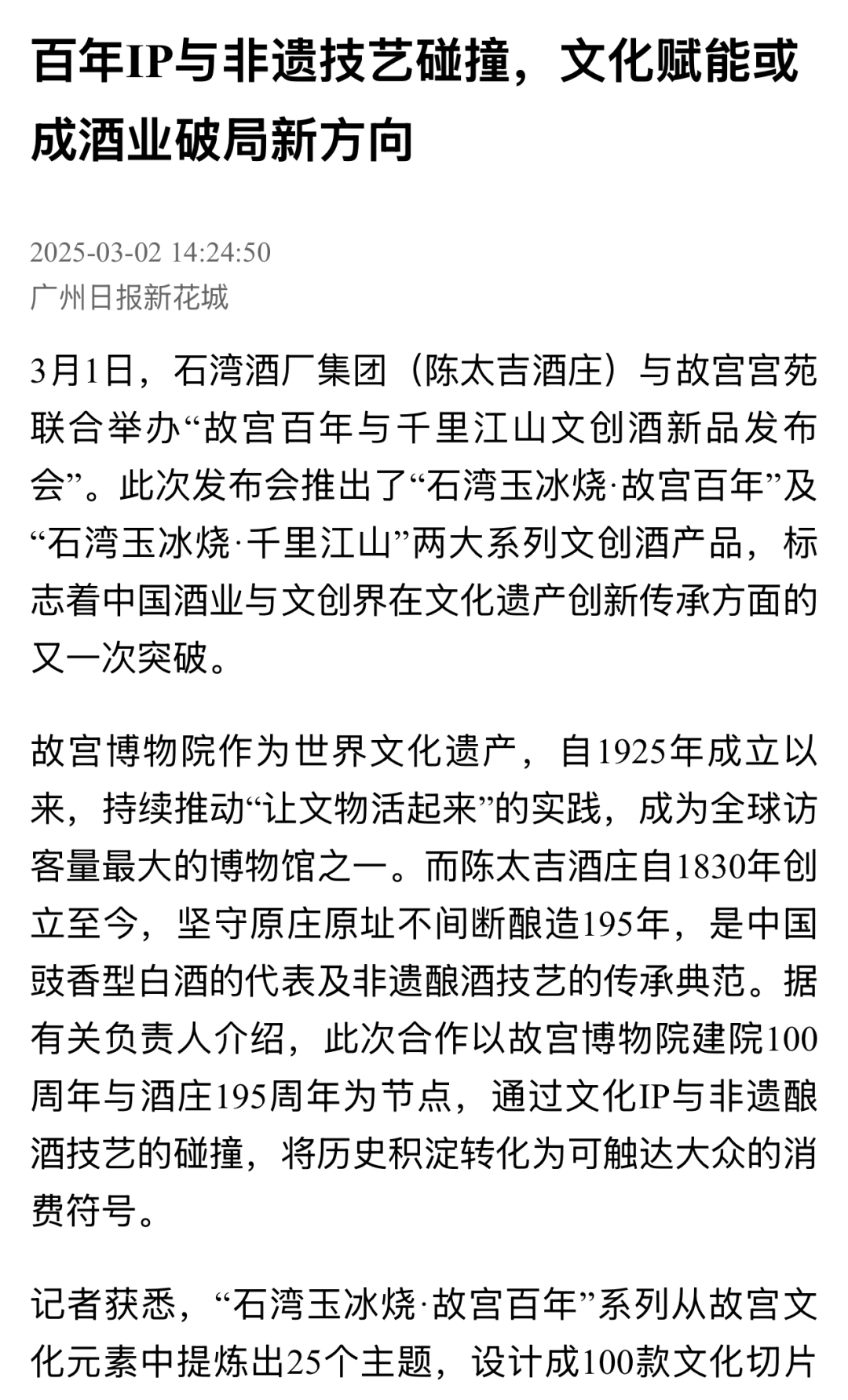 石湾玉冰烧故宫文创酒、隆重上市