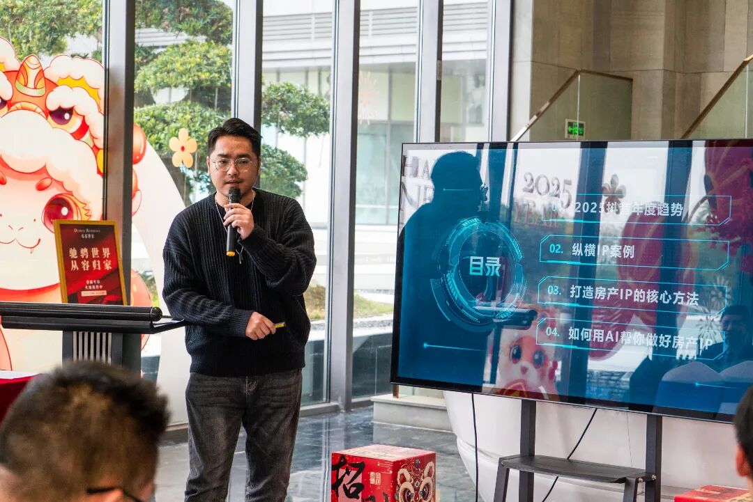 惠州市纵横合创房地产咨询服务有限公司 CEO 钟景威先生分享了公司在房地产营销领域的丰富经验和优势,畅谈对 AI + 地产自媒体营销的见解与展望。