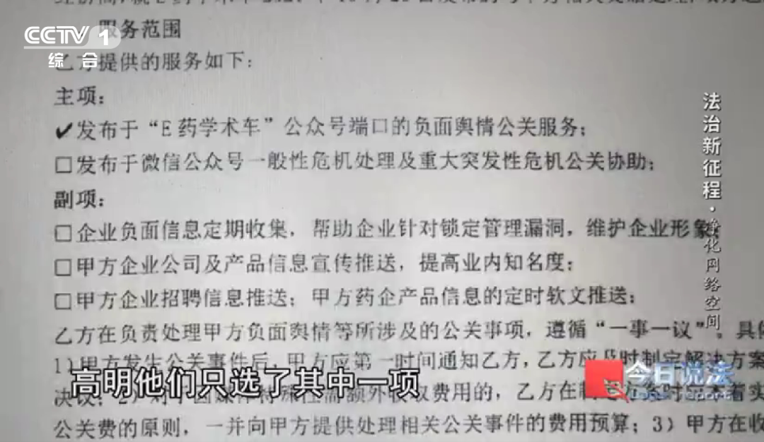 经过交涉,该作者说,如果想要撤稿就得先“谈个合作”,即签署一份“公关服务合同”。合同的服务范围分主项和副项,每个选项都对应不同的价格,最低3万、最高45万,合同最少签一年,一年的最低费用为20万。