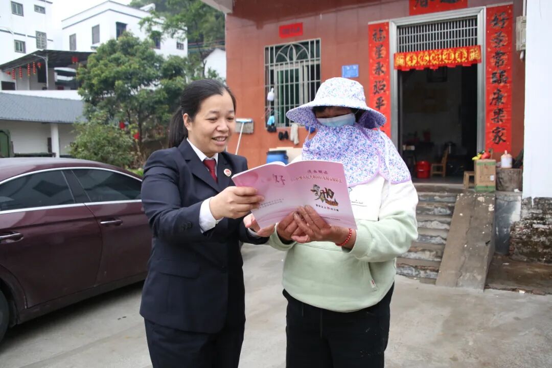 妇女节前夕,电白区检察院联合区妇联、区司法局共同走进“云上南清”,开展“三八”维权周活动。检察人员带着普法资料,踏着乡间小路,敲门入户,用“拉家常”的方式为南清村的妇女群众答疑解惑。