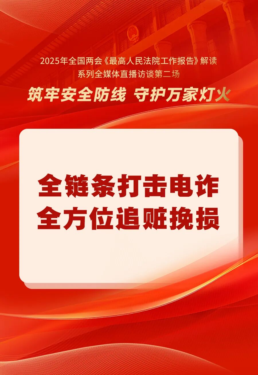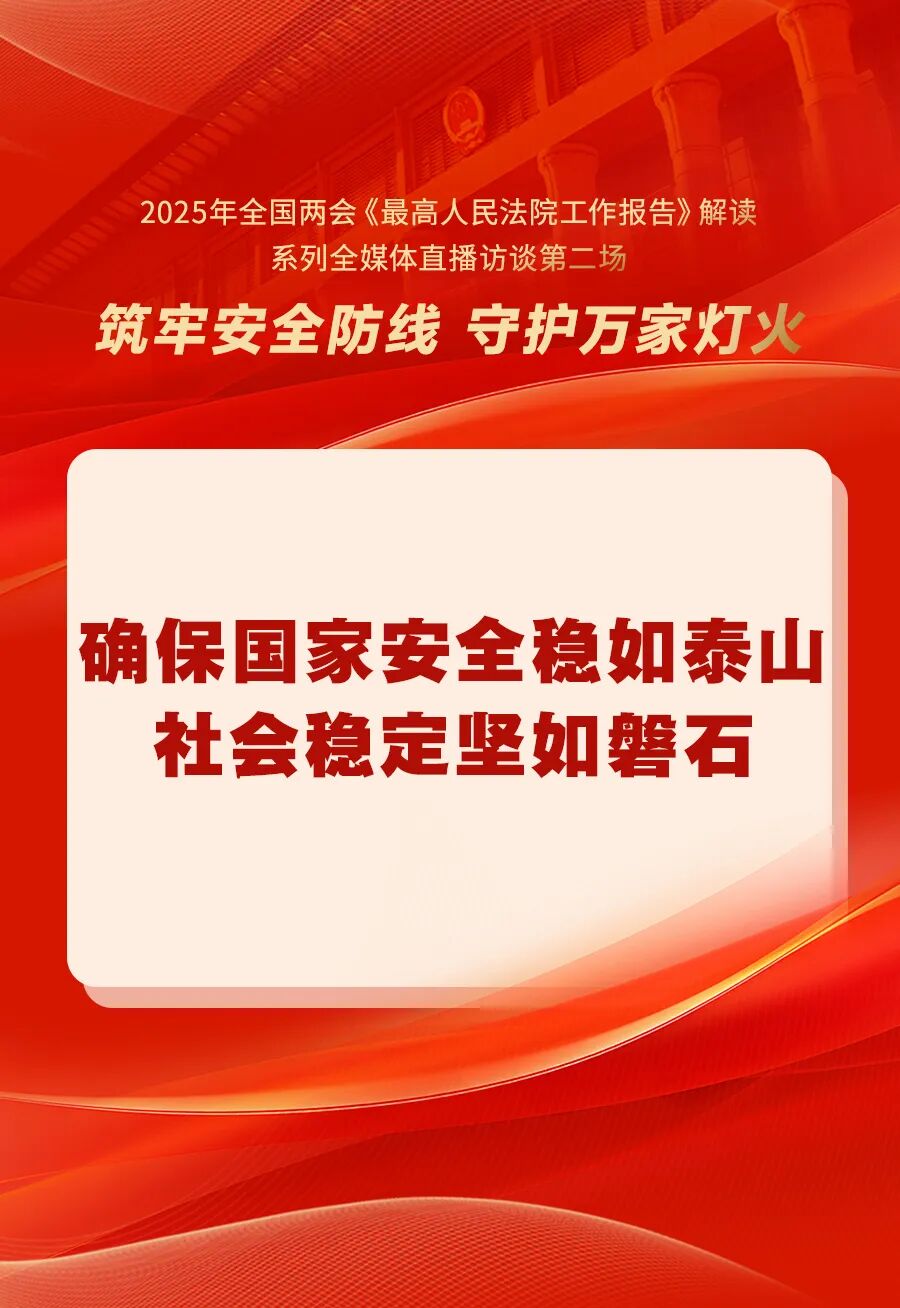 3月9日下午,最高人民法院举办2025年全国两会《最高人民法院工作报告》解读系列全媒体直播访谈第二场活动。最高人民法院审判委员会委员、刑一庭庭长何莉围绕刑事审判防风险、保安全、护稳定在线解读《最高人民法院工作报告》。中央广播电视总台主持人张仲鲁主持活动。40余家媒体及网络平台参与直播访谈。