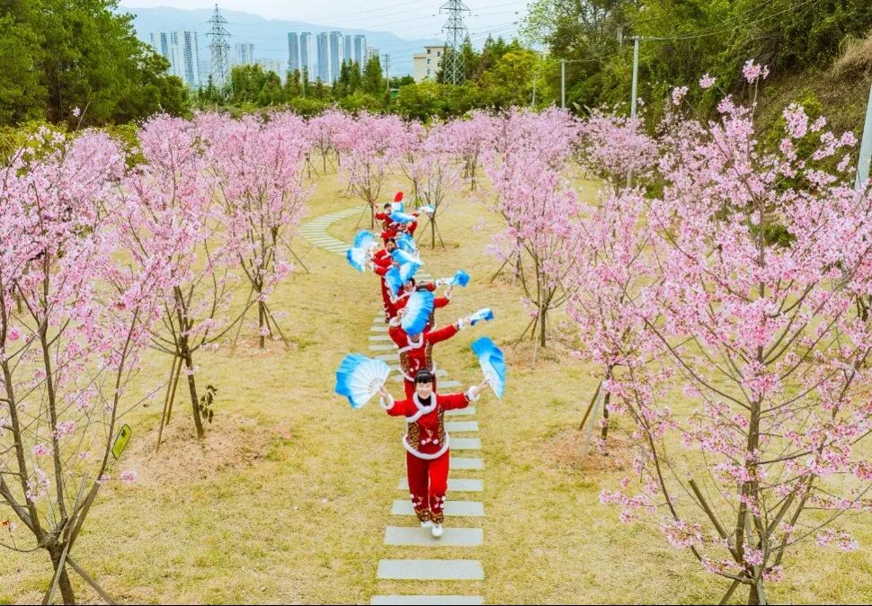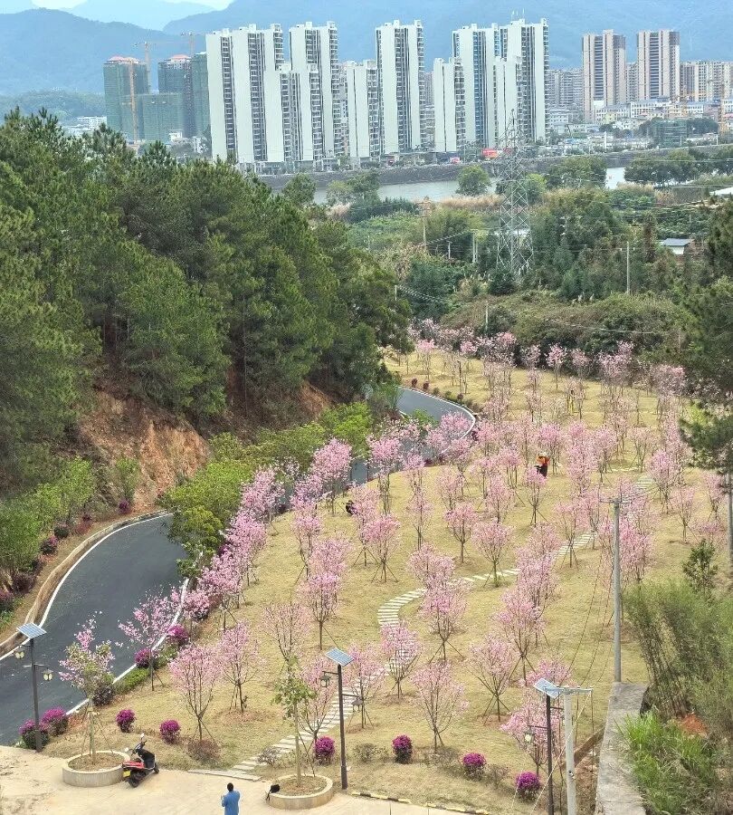 若夫公园地处石窟河畔,坐拥长潭4A级旅游景区,周边基础设施配套完善,人口聚集、交通便利,是“寿乡画廊”绿美广东生态建设示范点的重要节点。公园以促成蕉岭设县的载入《明史》人物赖其肖之号“若夫”命名,充分展示蕉岭人文风情。同时,统筹社会资金、自筹资金种植樱花8000多棵,铺设森林步道2.5公里,建设山顶观景平台,已逐步成为蕉岭人民群众休闲娱乐的“乐园”。