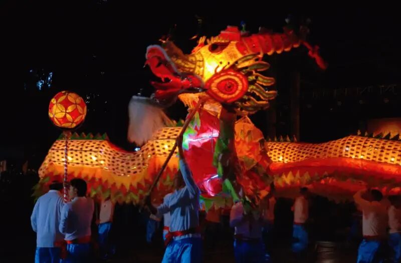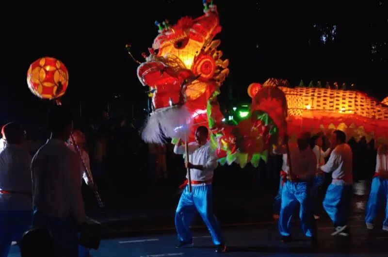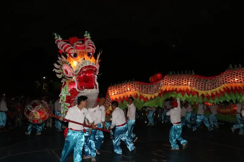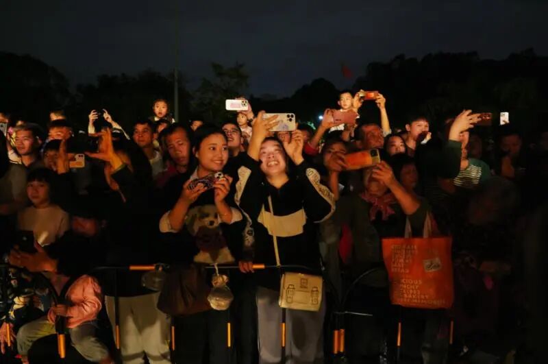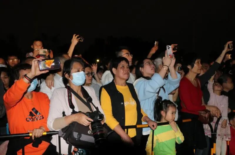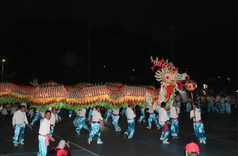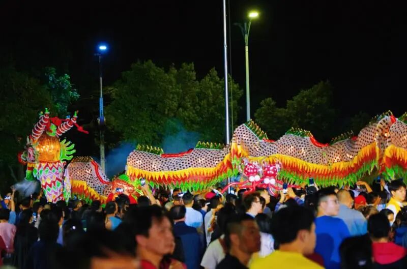 晚上8时,伴随铿锵有力的锣鼓声,龙狮威武亮相。芝山纱龙作为本次活动的“重磅嘉宾”,舞姿变化多样,为观众带来16个花式精彩表演。纱龙全长57米,共24节,由120人多轮换舞。舞动时烛光闪闪,蜿蜒数十米,时而盘旋昂首,似欲冲霄而去,时而翻滚腾挪,活像下海寻珠,栩栩如生,千姿百态,让现场的观众叹为观止。