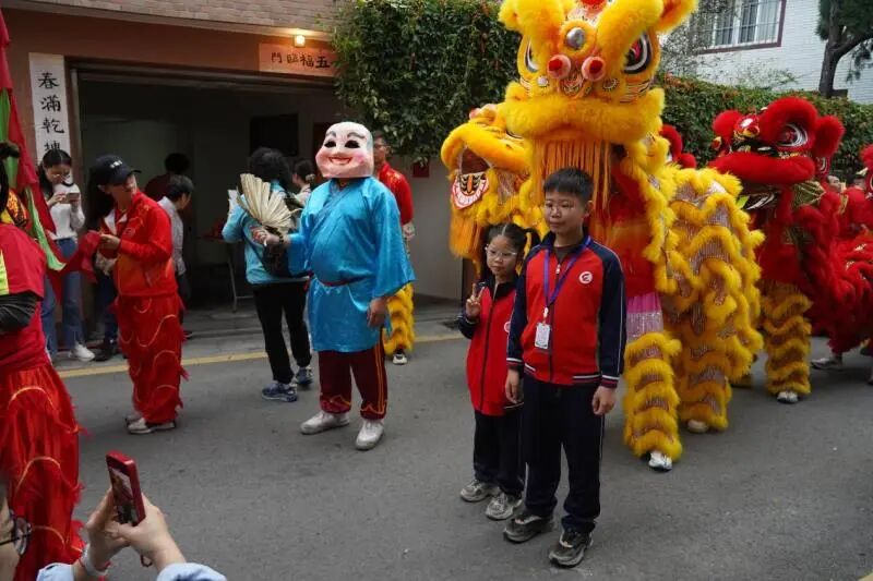 活动现场,由坦边雄生馆醒狮队带来的醒狮表演同样赢得观众的阵阵欢呼与掌声。配合着明快的锣鼓节奏,六头瑞狮在表演者的演绎下活灵活现,或翻滚或跳跃,还有“大头佛”手执大葵扇与狮互动,场面生动有趣,喜庆洋洋。