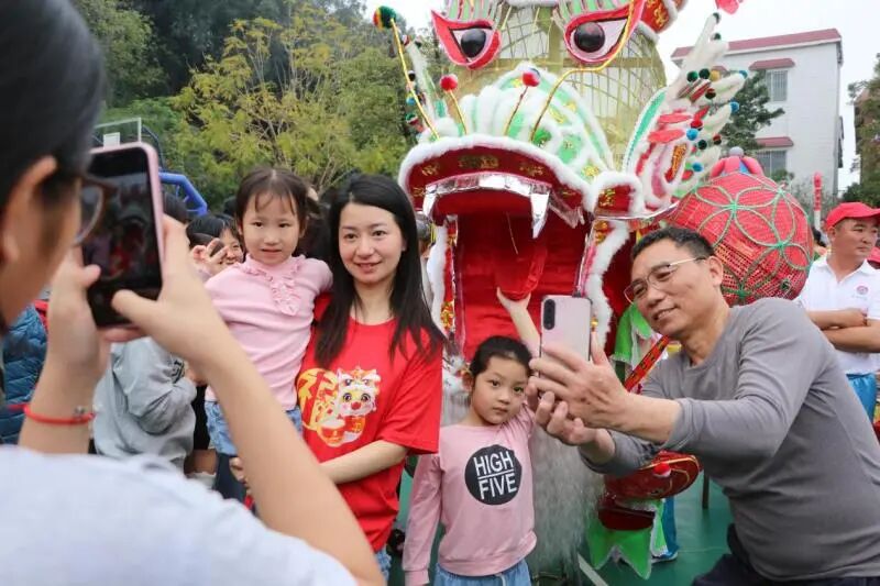 舞动的芝山纱龙盘旋昂首、翻滚腾挪,英歌舞者步伐矫健、激情四溢,醒狮伴随着鼓点奔腾跳跃……民俗表演精彩绝伦,活动现场人头涌动,巡游队伍所到之处,爆竹声此起彼落,大街小巷喜气洋洋,祈福民众络绎不绝,其中不乏举家出动,共祈来年国泰民安、风调雨顺、安居乐业、健康长寿的美好愿景。