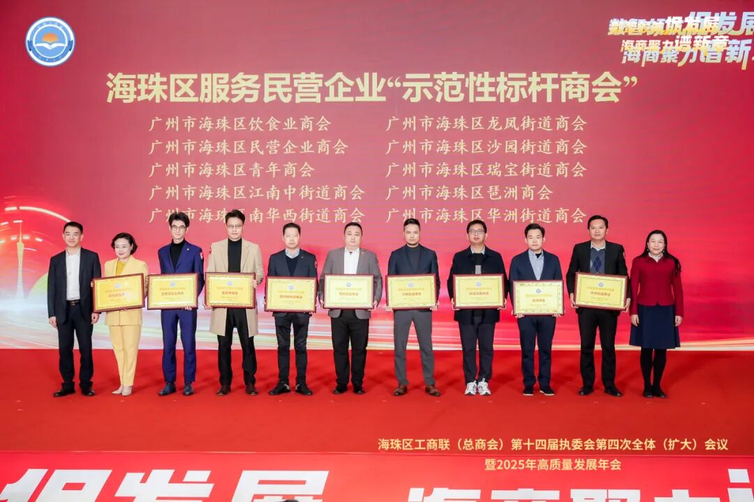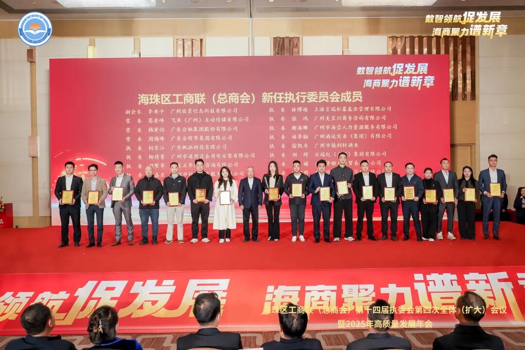 3月7日下午,海珠区工商联(总商会)第十四届执委会第四次全体(扩大)会议暨2025年高质量发展年会隆重举行。全国工商联人才交流服务中心副主任高波,广东省工商联党组成员、专职副主席冯日光,广州市委统战部副部长、市工商联党组书记魏国华,市工商联党组成员、副主席兼秘书长熊鹰,海珠区委书记蔡澍,区委副书记、区长毛松柏,区人大常委会党组书记、主任陆世泽,区政协党组书记、主席温志文,区委常委、统战部部长王福军,区委常委、宣传部部长、副区长孙伟,区委常委、办公室主任陈永宏,区人大常委会副主任、区卫生健康局局长董延明,区政府党组成员、副区长陈宇,区委统战部副部长、区工商联党组书记廖慧莲等嘉宾参加。市工商联副主席、区工商联主席、广州市社会组织联合会会长、华新集团董事局主席冯耀良出席会议并发言。