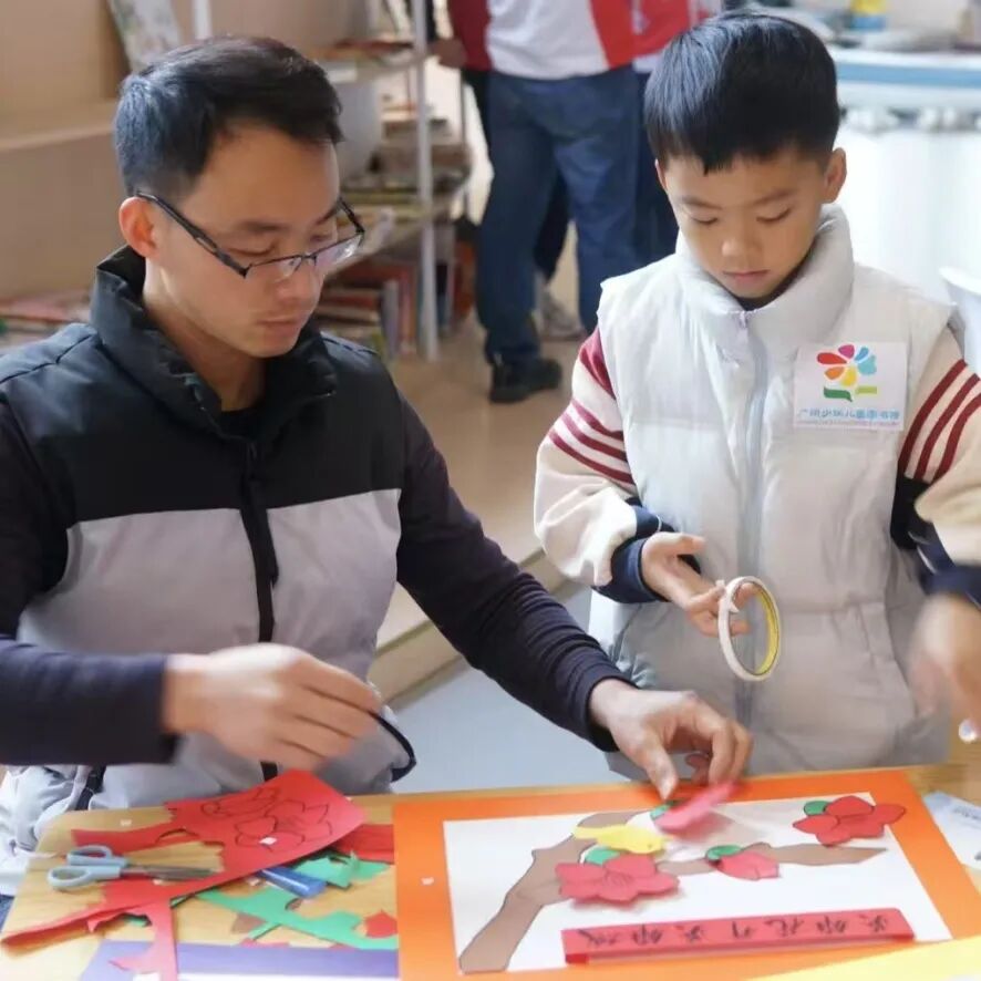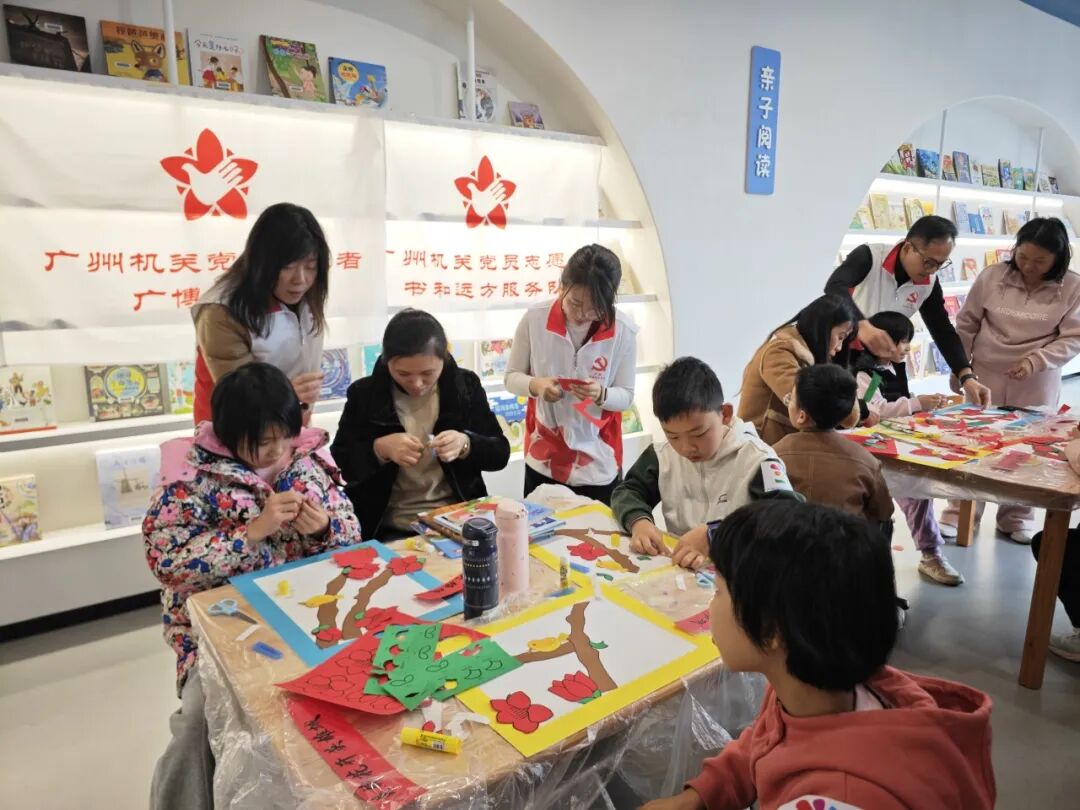 岭南春早,木棉花开。小读者们拿着主办方精心准备的“红心向党”手工材料包,兴致盎然地制作木棉花手工粘贴画。认真地裁剪、细致地构图、专注地粘贴,孩子们用美术的方式留下木棉花最炙热的绽放,歌颂革命先辈无私奉献、不畏牺牲的伟大精神。