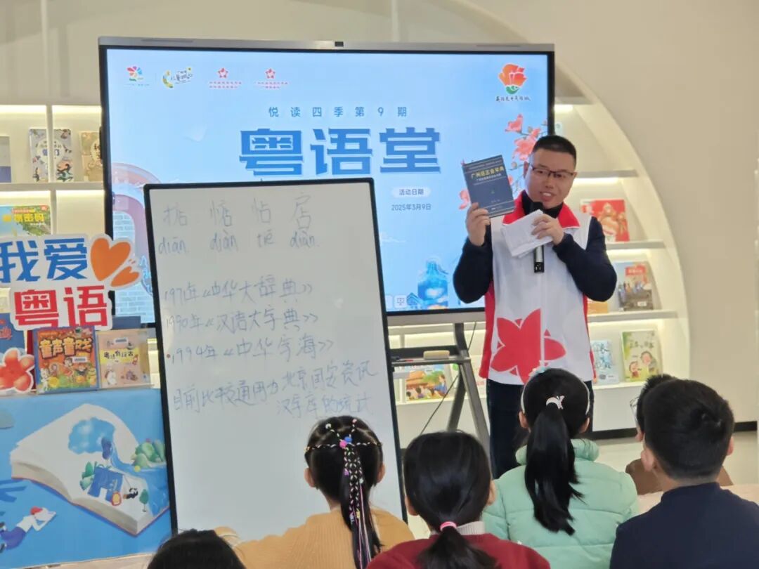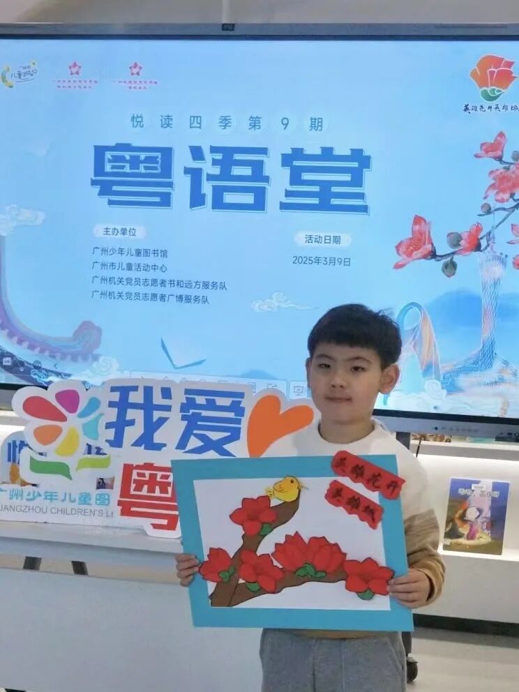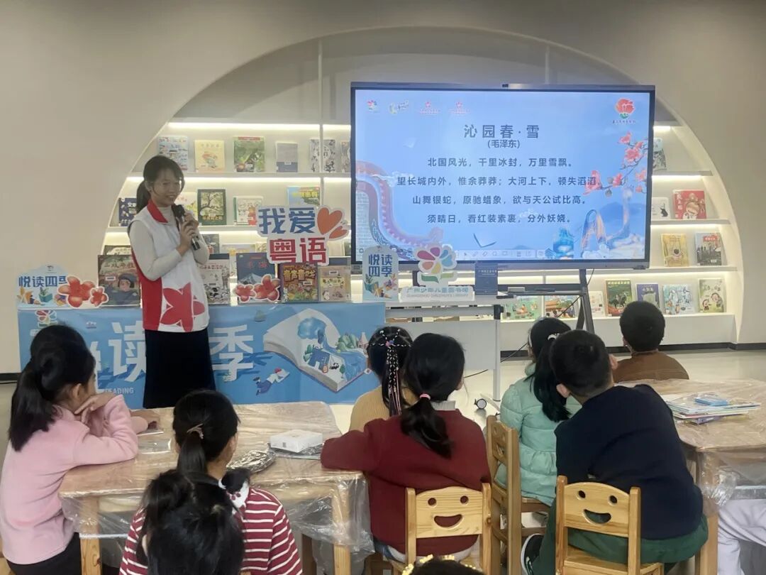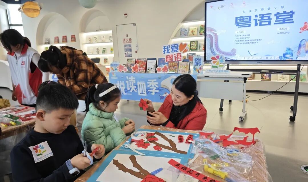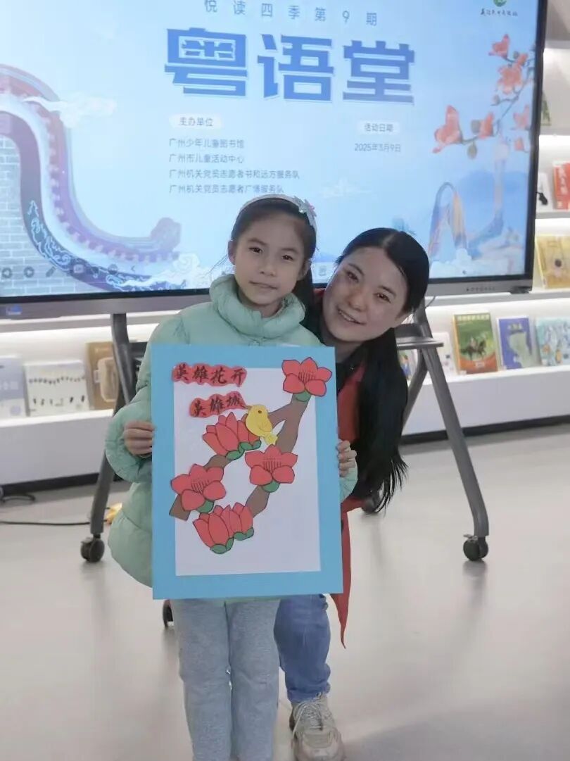 春潮涌动,木棉盛放,近日,由广州市儿童活动中心、广州少年儿童图书馆、广州机关党员志愿者书和远方服务队、广州机关党员志愿者广博服务队联合举办的“英雄花开英雄城”2025广州传承弘扬红色文化系列活动之“粤语堂——学趣味粤语 颂红色诗词”活动在广州市儿童活动中心天宫图书馆(齐心路)举行。活动共吸引了约30组家庭约60人参与。