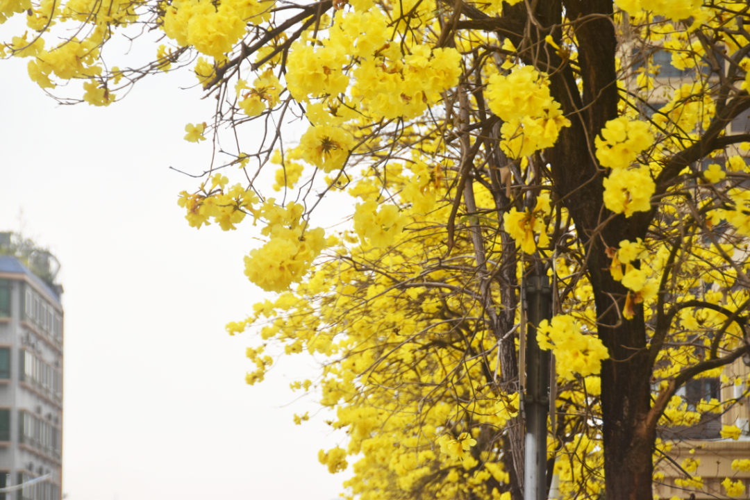 据悉,黄花风铃木属于紫葳科风铃木属落叶乔木,通常在每年春季3到4月开花,花期较短,仅仅能维持十天左右。这种短暂性,使得它在自然花卉中显得尤为珍贵,宛如大自然馈赠的一份限时礼物。