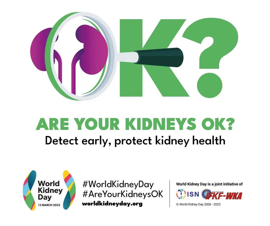 2025年3月13日是第二十个“世界肾脏日”。今年“世界肾脏日”的主题是“您的肾脏还好吗?早检查,保健康”。