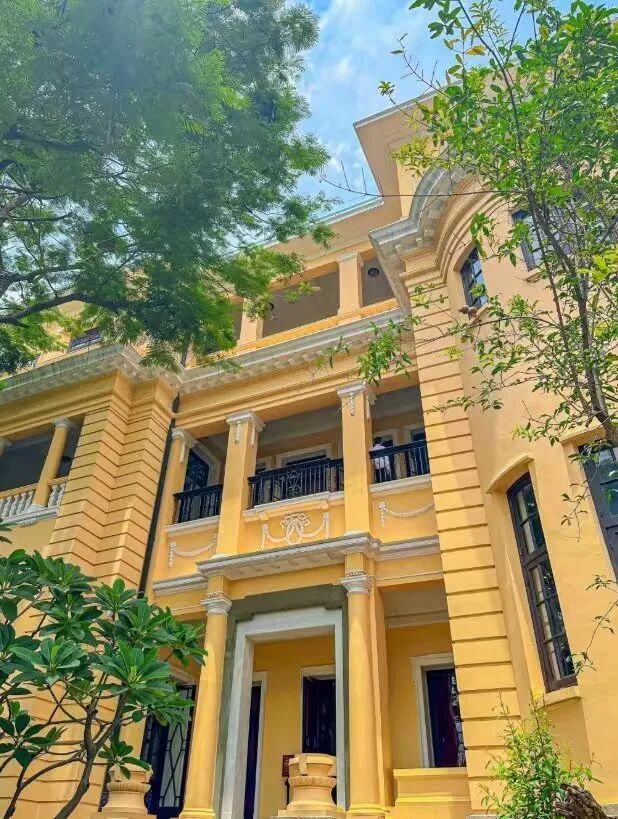沙面大街54号:鹅卵石外墙的法国东方汇理银行旧址,三层拱券回廊暗藏《大公报》抗战时期秘密印刷点故事。