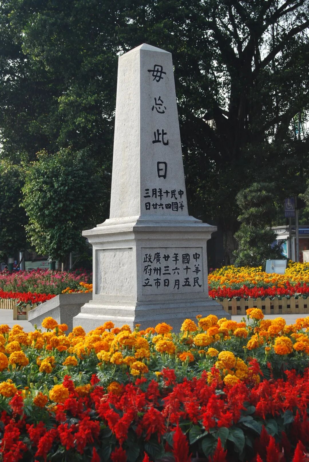 沙基惨案纪念碑位于荔湾区沿江西路与新基路交汇处、人民桥东侧的江畔小广场上,坐西朝东,呈方锥形,上窄下宽,正面镌刻“毋忘此日”四个大字,为纪念1925年发生在珠江之畔的沙基惨案而立。1926年6月,为纪念遇难同胞、铭记历史和教育后代,沙基路改筑为马路,并将这条路命名为“六月二三路”,后改为“六二三路”,同时在人民桥东侧珠江河畔竖立了刻有“毋忘今日”的纪念石碑。