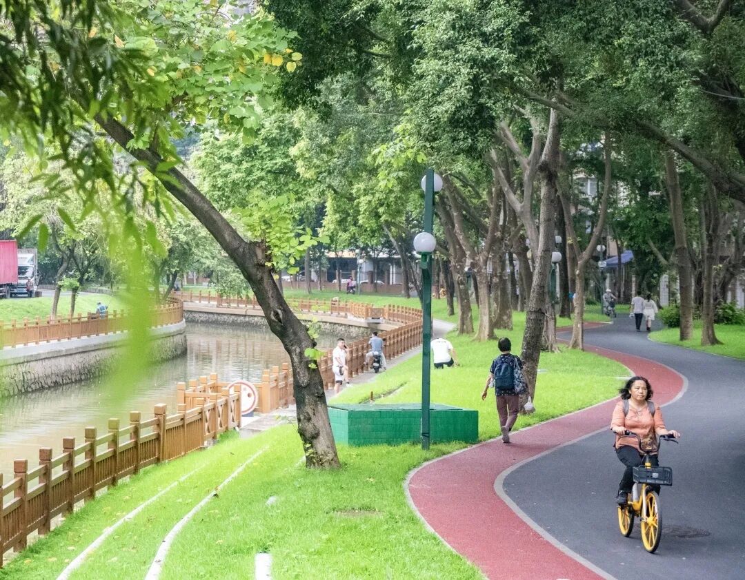 驷马涌滨水碧道以微改造的手法和“绣花”功夫,巧妙构筑滨水空间节点,最终形成每段河道各具特色的断面形式,最大限度满足了群众交通出行、人车分流、运动休闲、游憩娱乐的生活需求和海绵城市建设需求,改造后形成可行可驻、宜游宜憩、开门见水、推窗见景的高质量滨水生活空间。