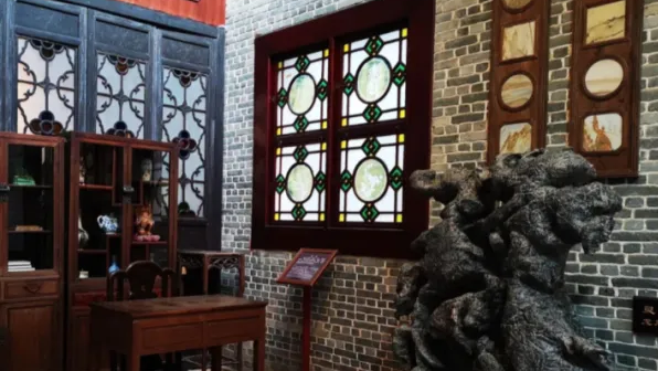 西关民俗馆:以复建的西关大屋为主体建筑,通过家居摆设、情景陈列,局部再现传统西关大屋的典型模式及西关住家的生活情态和文化景观。广州有俗语:“西关小姐,东山少爷”。在西关民俗馆的二楼,还原了一间西关小姐的闺房,陈设有西式脚踏风琴、传统梳妆台、黄杨木雕花小姐床等,中西兼糅的布置体现了西关小姐的生活情态和特点。