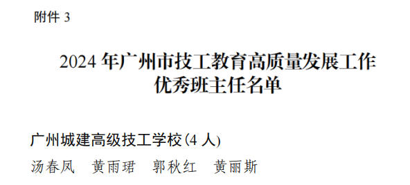 2024年广州市技工教育高质量发展工作优秀班主任名单