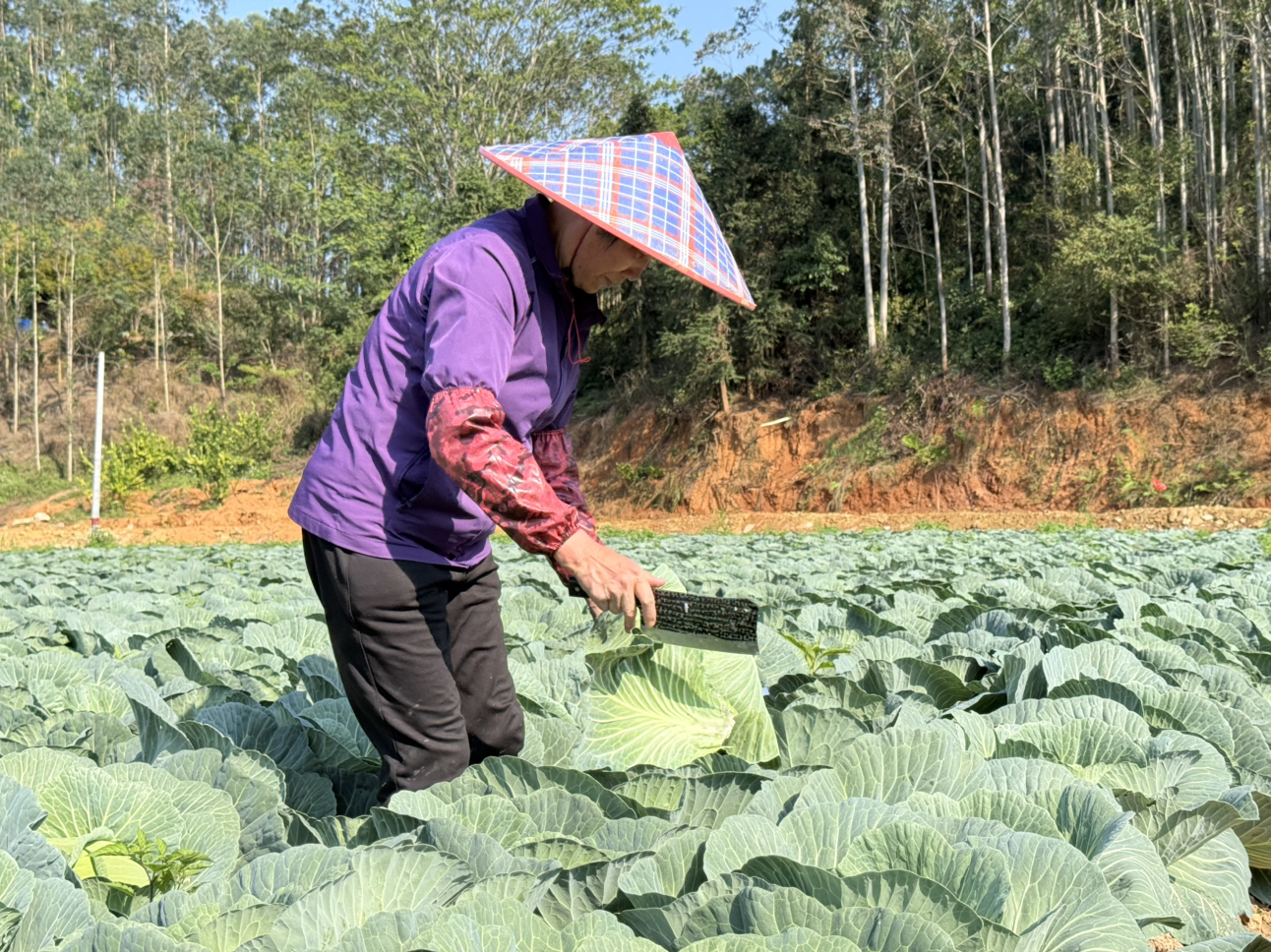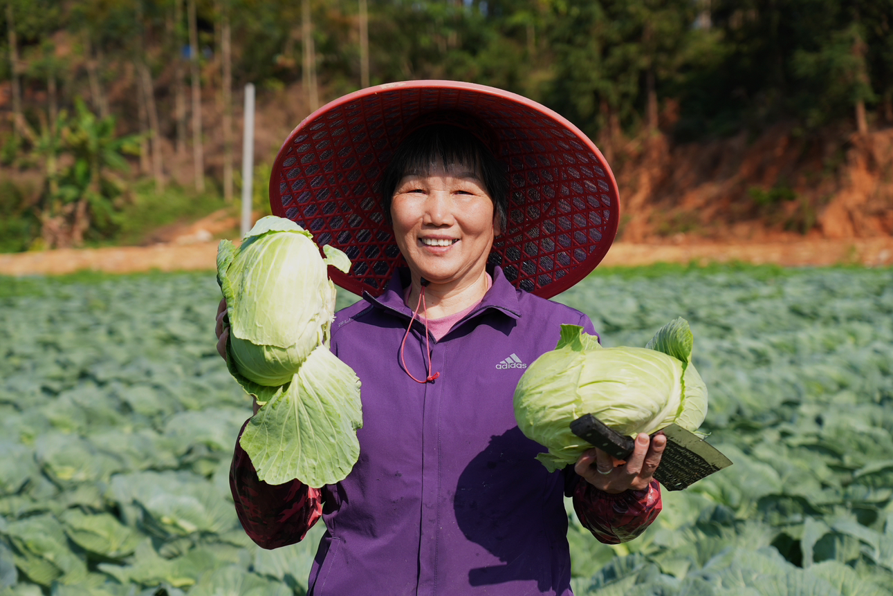黄连英表示:“冬菜收割后土地闲置,所以大家想着种包菜增加收入。今年我们几户人家种植两种包菜,一种是平菜,口感软糯、清甜;另一种是京菜,口感脆爽。今年平包菜亩产约6000斤,京包菜亩产可达7000—8000斤。目前收购价是3毛钱一斤,已经卖出一万多斤。”