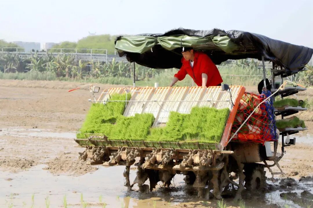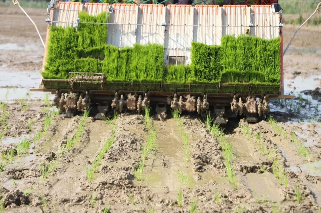 千亩农田上,插秧机如同训练有素的舞者,在水田里精准穿梭。一株株嫩绿的秧苗从插秧机的 “手臂” 滑落,整齐有序地插入泥土,溅起朵朵晶莹的水花,转瞬之间,水田便披上了一袭葱郁的新衣。