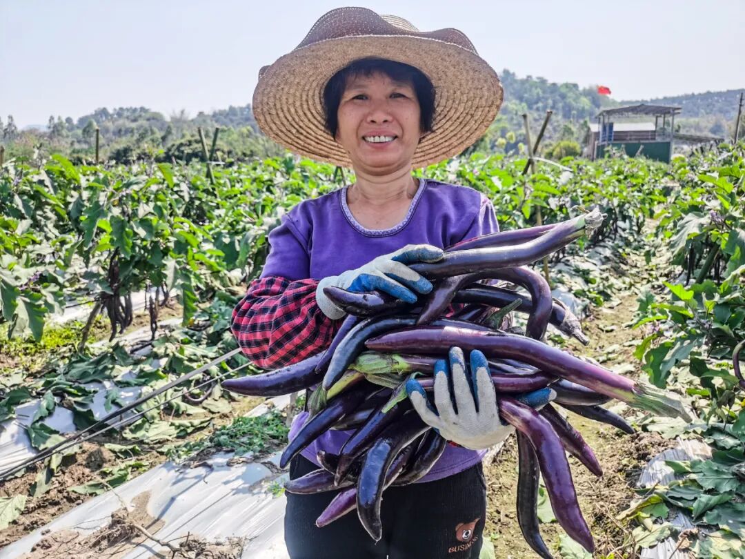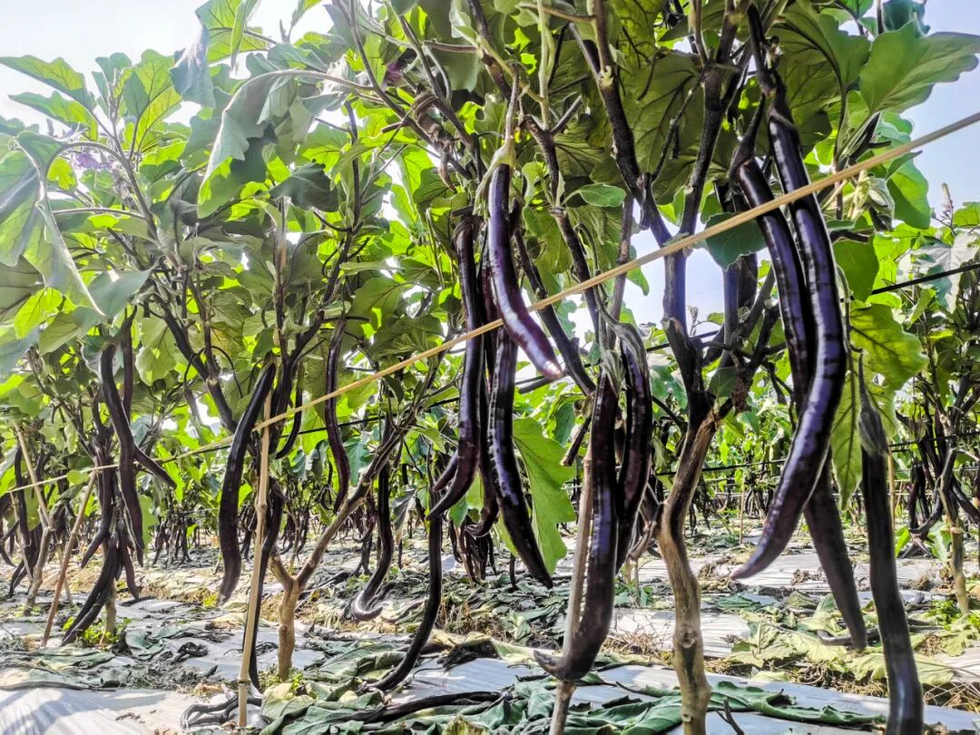 该基地占地60余亩,50多亩用于种植茄子。基地负责人感慨地说,此前极端天气重创基地,原以为会严重减产,但在镇农业发展服务中心和驻镇帮镇扶村工作队的帮助下,大部分倒伏作物半月内恢复,茄子植株产能恢复超六成。