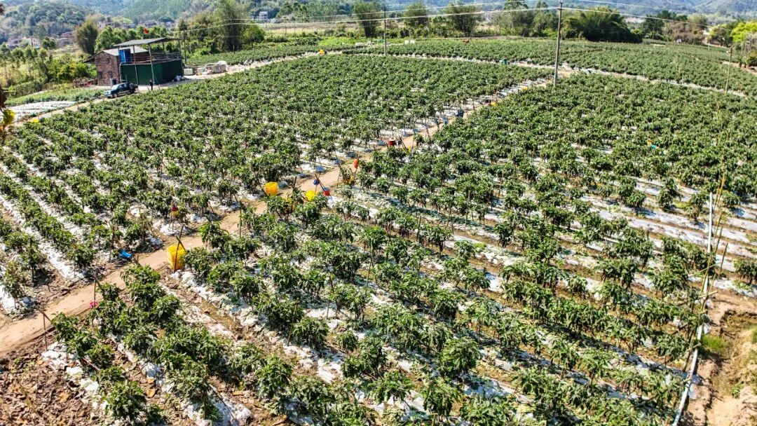 据了解,今年3月4日,基地受大风暴雨冲击,茄子、辣椒等植株大面积倒伏。六都镇农业发展服务中心和驻镇帮镇扶村工作队迅速行动,提供“抢修+止损”方案,指导农户申请农业保险理赔。在农户人手不足的情况下,镇干部与农技专家一起,运用竹竿支撑绑扎等技术抢救植株,疏通沟渠、强化菌剂防护等,两三天就完成了大部分受损植株抢救,为农户减少约10万元损失。