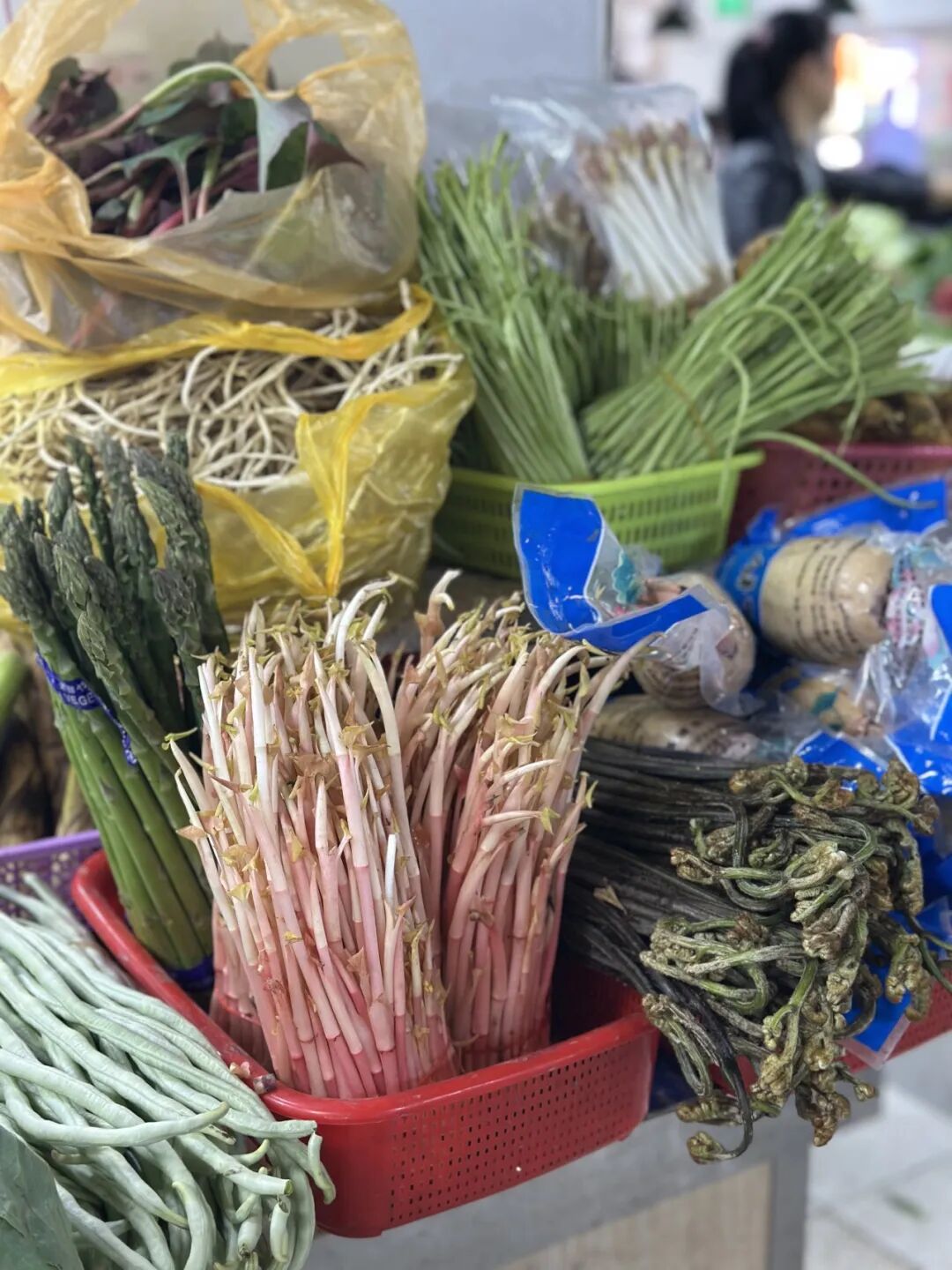目前正值香椿、蕨菜、春笋、野藜蒿、野茼蒿、苦麦菜、野芹菜、荠菜、鱼腥草、枸杞菜、蒲公英等时令春菜售卖时节,颇受市民青睐。
