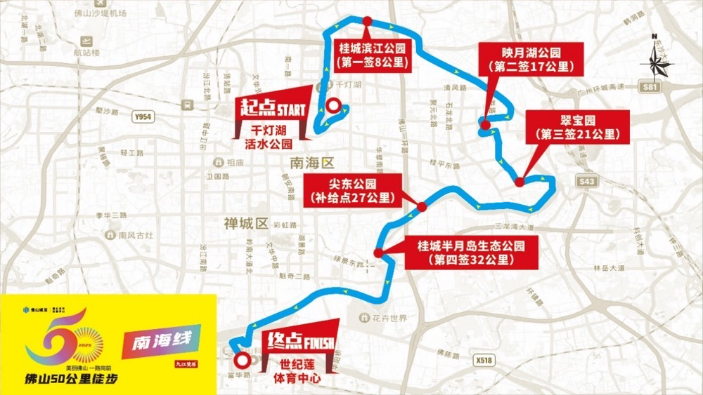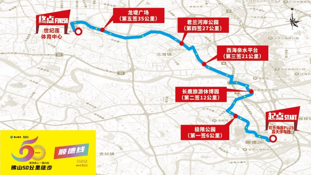 “佛山城发全程总冠名——‘美丽佛山 一路向前’2025佛山50公里徒步”活动将于3月22日激情开走。为让广大参与者可以围绕徒步路线欣赏公园、绿道、花海、河堤等城市美景,品尝佛山地道美食,深度领略佛山的历史人文与自然风光,2025佛山50公里徒步线路进行了最新调整。