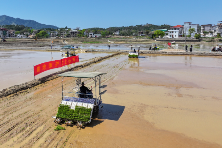在农业基础设施方面,东源县加快补齐农田基础设施短板,大力实施高标准农田建设工程,建设高标准农田19.16万亩,占全县永久基本农田的74.89%,有力地夯实了粮食增产增收的基础。与此同时,该县还深化与省农科院、华农大、仲恺农业工程学院等院校的合作,强化科研成果转化运用,提升农业科技应用水平。全县水稻耕、种、收综合机械化水平达71.75%,全市首个智慧无人农场落户东源,实现耕种管收全流程自动化,推动亩产提升到537.5公斤。