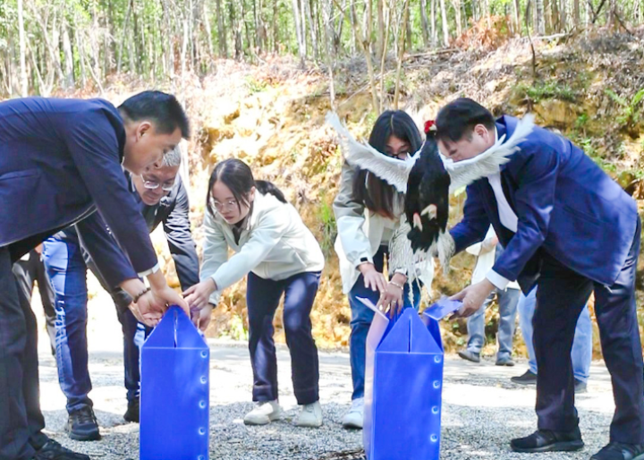 当天还进行了鸟类放飞,4只被救护的国家二级保护动物白鹇,在痊愈后重返山林。临行前,一只白鹇在放生箱里留下一枚蛋,后续将经过检测再进行孵化。此外,一起被放飞的还有8只国家“三有”保护动物斑鸠、1只黑脸噪鹛、5只乌鸫。