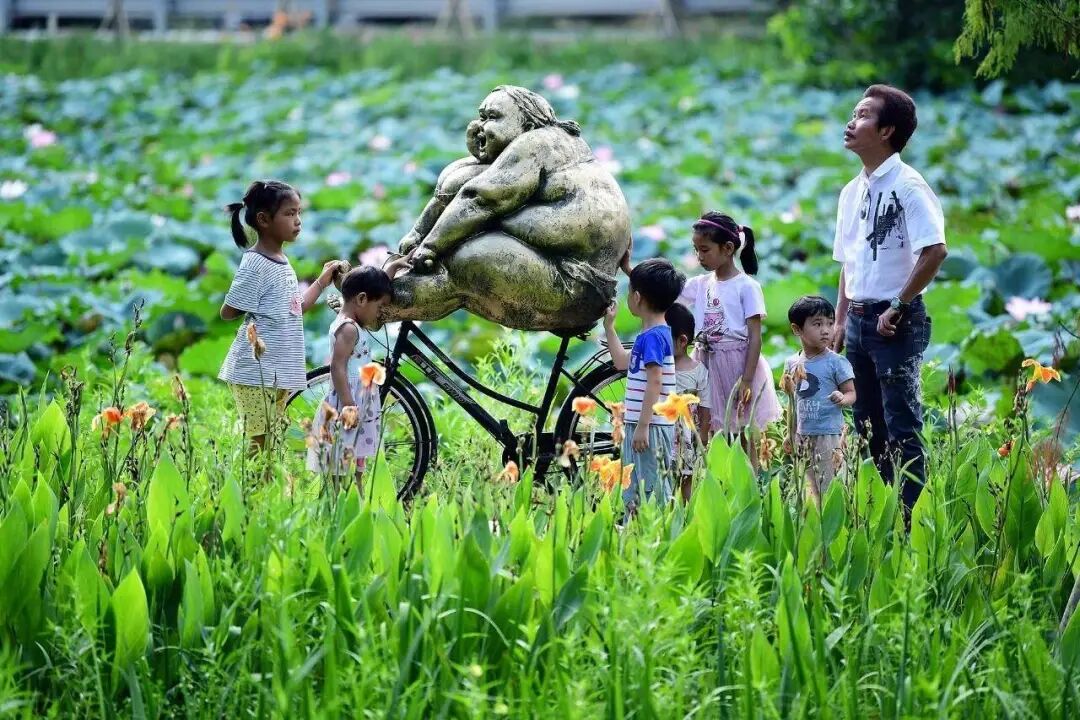 许鸿飞的肥女雕塑在乡村广受欢迎喜爱。