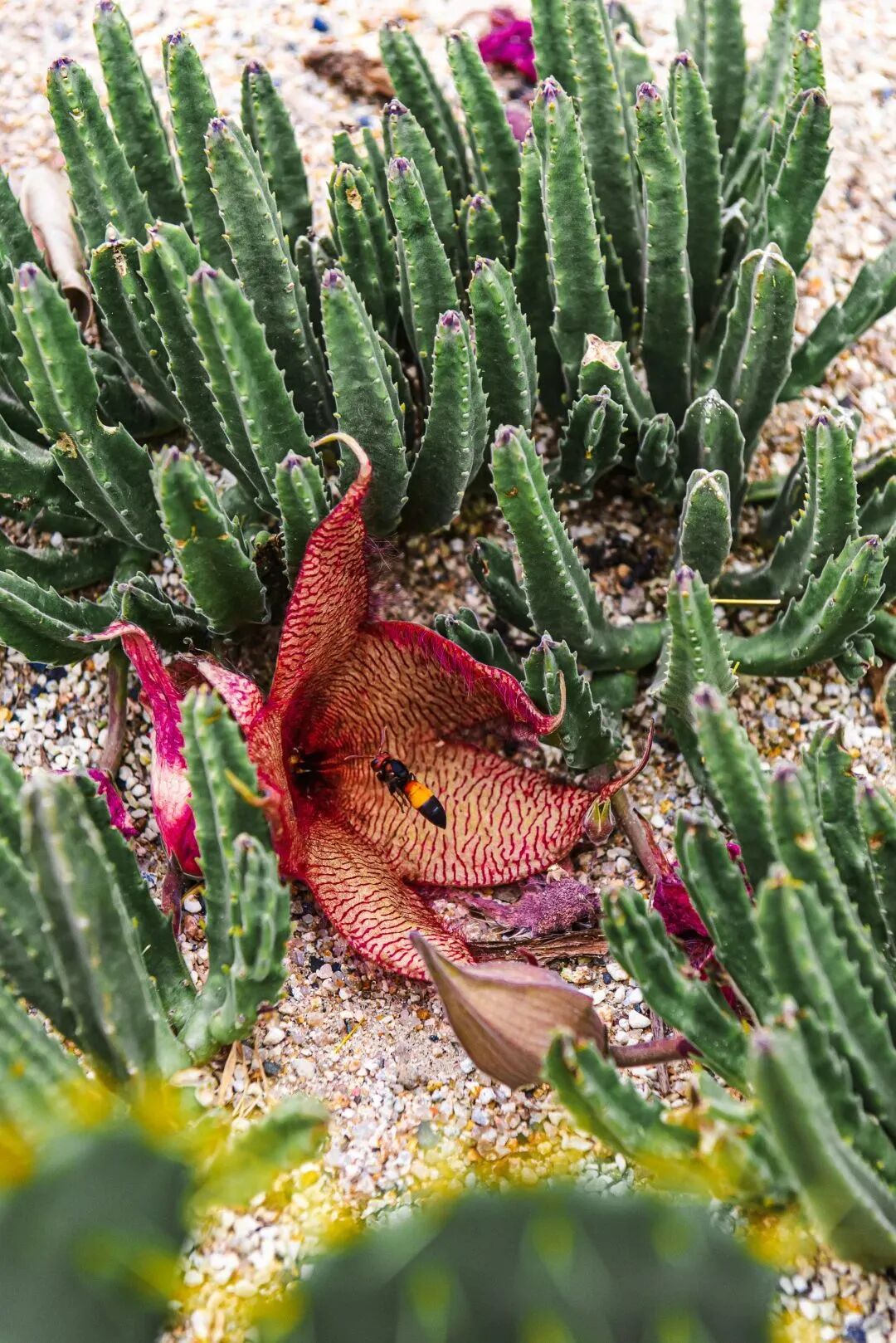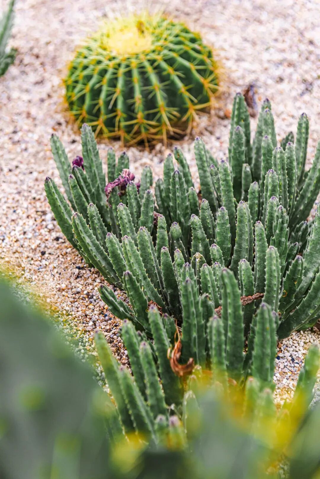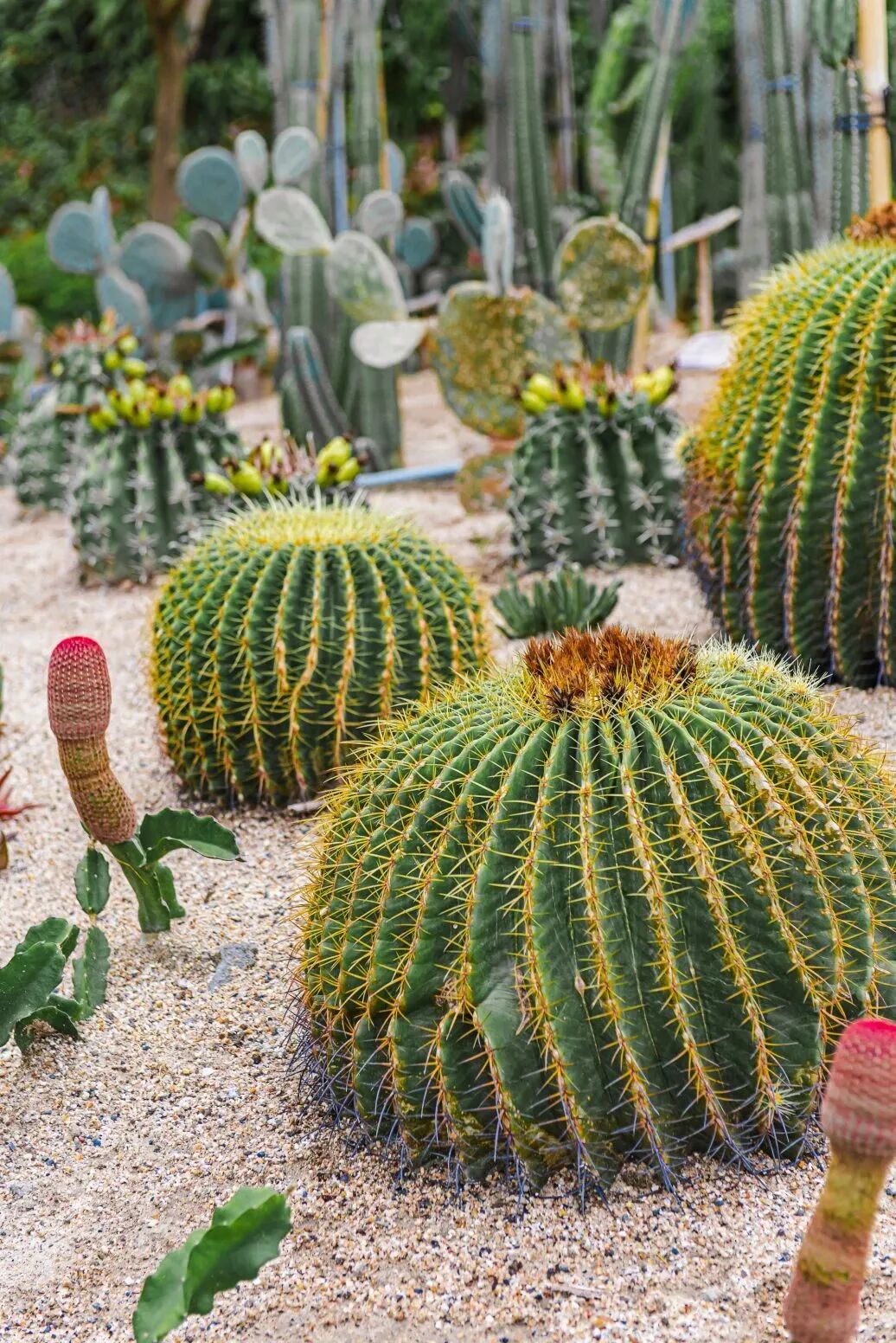 这里有着“网红打卡地”——沙生植物馆,一眼望去与前面所看的绿植完全不一样,形态万千的仙人掌排列眼前,有的高耸挺拔,有的低矮敦实,有的纤细修长,有的圆润饱满......
