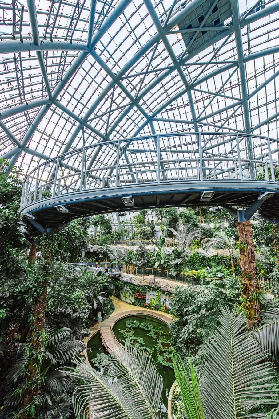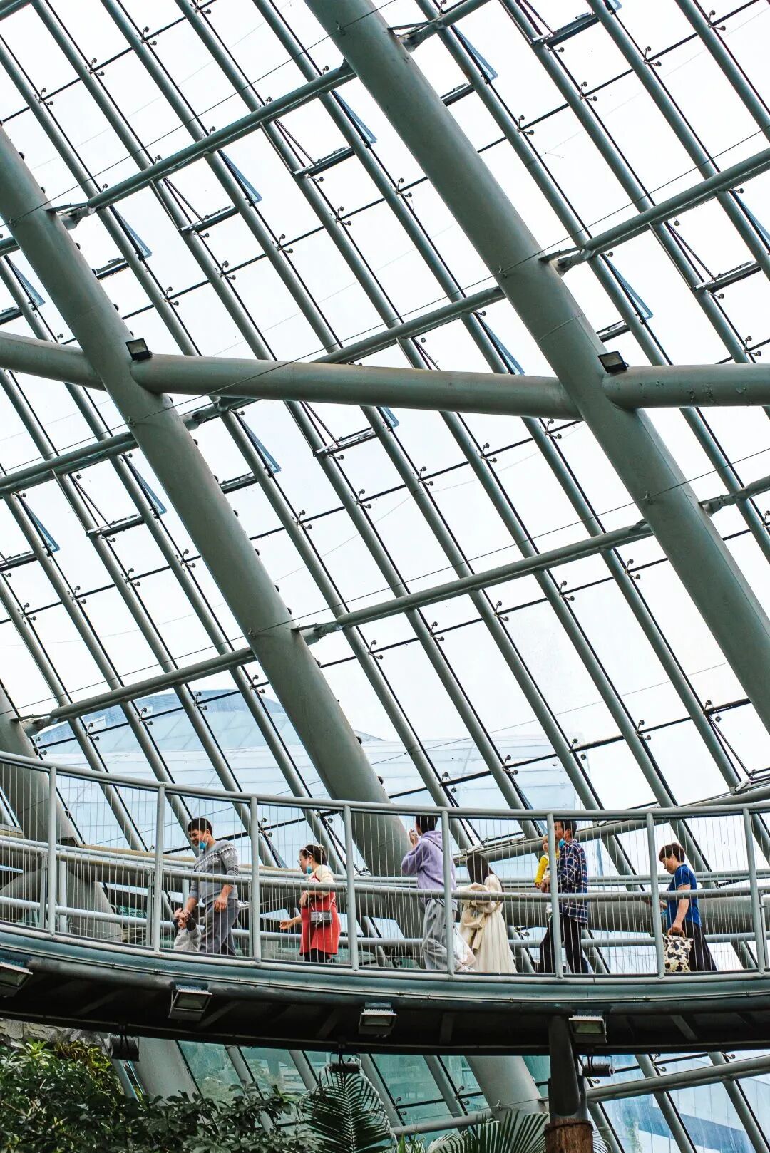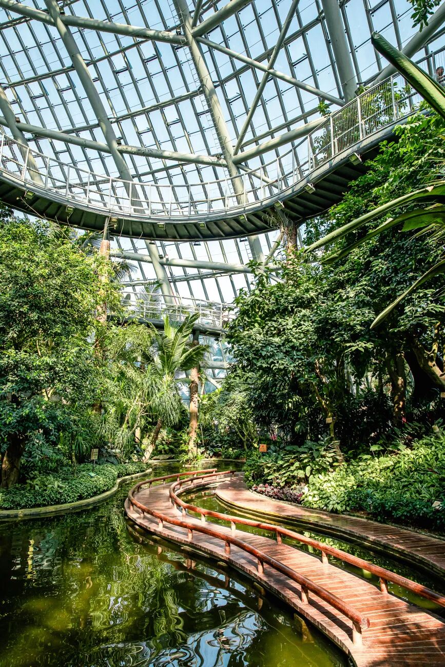 一层一层的景观视角皆不相同,沿着台阶向上走,可以在空中走廊中一览整个温室馆的美景!