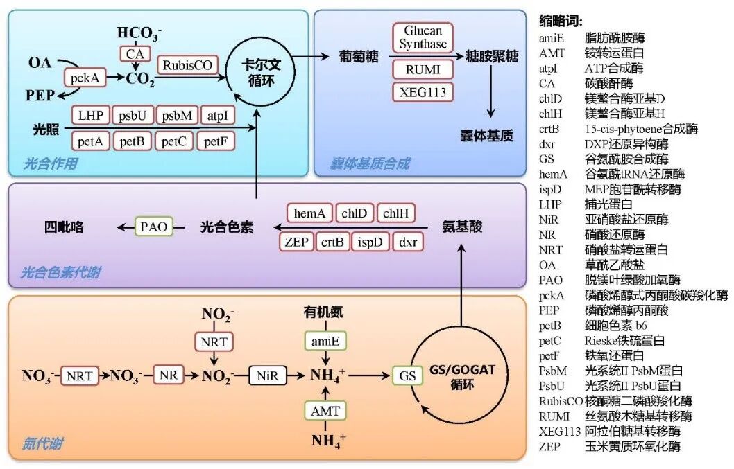 此外,球形棕囊藻在赤潮暴发期间特殊的“生活方式”也是赤潮暴发的原因之一。与消退阶段相比,赤潮暴发期间球形棕囊藻的光合作用、光合色素代谢、氮代谢以及囊体基质(糖胺聚糖)的生物合成等关键生物学过程存在显著差异,这些过程共同驱动了赤潮的发生和发展。更有趣的是,海洋中的硅藻也在球形棕囊藻赤潮的形成中扮演了重要角色,在硅藻作用下,球形棕囊藻更倾向于将物质能量投入到囊体基质的合成过程中,就像是给囊体形成“加油”,促成了赤潮的暴发。