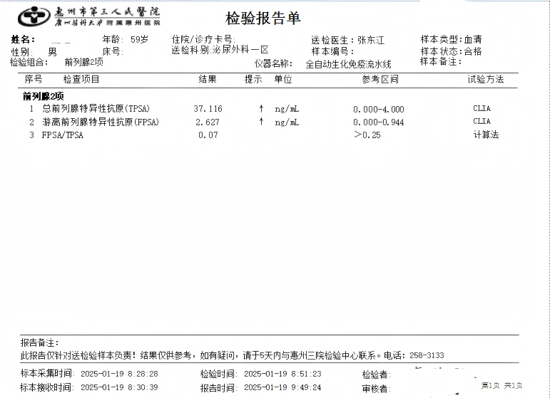那天,黄叔(化名)拿着体检报告,忧心忡忡地来到惠州市第三人民医院泌尿外科门诊。