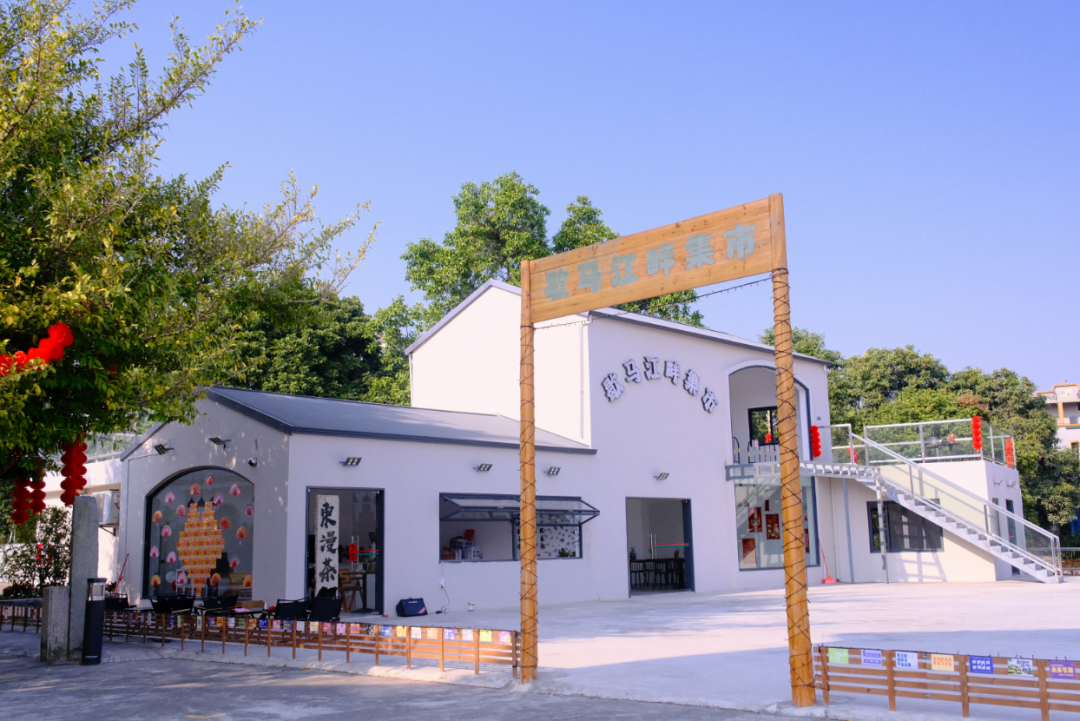 歇马江畔集市的前身,是一处闲置多年的村集体旧楼房。随着“百千万工程”的深入推进,歇马村以“微改造、精提升”为理念,联合五邑大学设计团队,将废弃空间改造为集休闲、消费、文化体验于一体的文旅综合体。如今,这里规划了便民驿站、乡村咖啡、文创市集、游客休憩区等,成为热门打卡点。