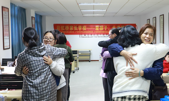 2024年5月,花都区残联成立彩虹桥家长学校,从心理疏导、康复技能培训、政策解读到特殊教育,为这些家庭点亮一盏灯。“当时我激动得热泪盈眶,终于找到组织了!”袁珍金回忆道。温丽兴也第一时间报了名:“在这里,我不再是一个人。”