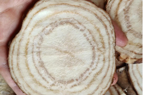 1、外观:优质葛根呈长圆柱形,表面有纵皱纹,质地坚实,断面可见纤维状纹理。