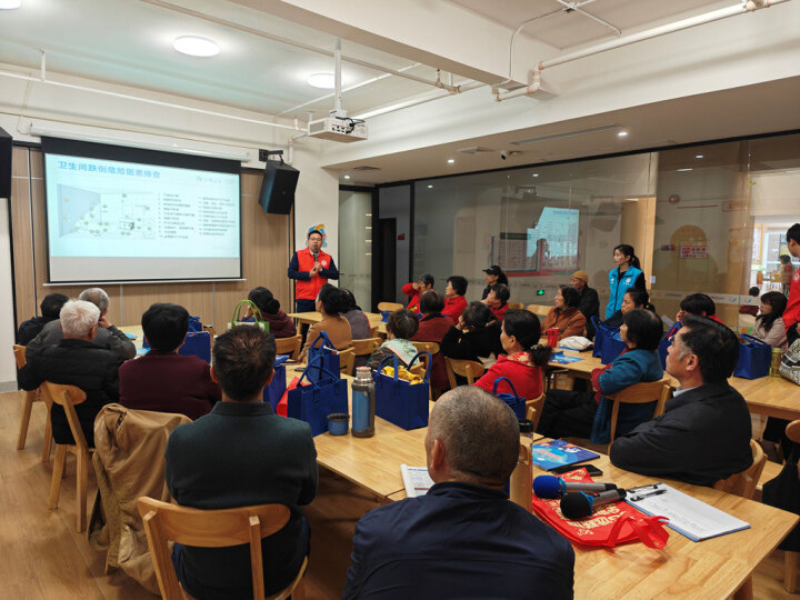 防跌倒是老年人居家安全的重要课题。在活动中,社工、志愿者以“图文并茂的PPT讲解+发放防跌倒安全手册”同向发力,生动地向现场的老人讲解居家防跌倒知识,指导老人识别家中隐患,涵盖了地面防湿、鞋子防滑、照明优化、杂物绊脚等防护内容,为老年人全方位讲述保障安全的重要性。74岁的李阿姨感慨道:“防跌倒有很多细节需注意,家里的居家环境要整理好。”
