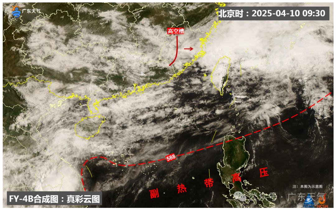今天(4月10日)上午,高空槽已东移过境,降雨云团东移出海,粤北的雨逐渐减弱。