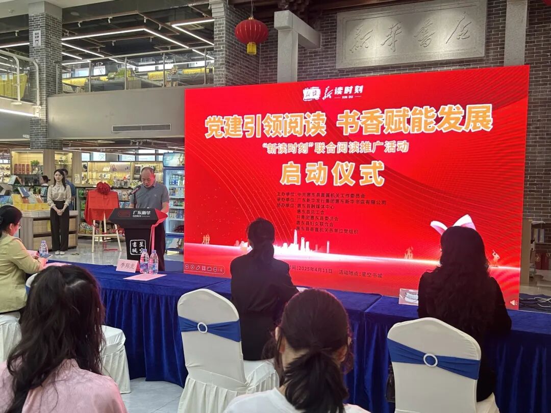 4月11日,由惠东县直属机关工作委员会主办,惠东县新华书店承办,惠东县融媒体中心、惠东县总工会、共青团惠东县委员会、惠东县妇联、惠东县直各机关党组织协办的党建引领阅读,书香赋能发展“新读时刻”联合阅读推广活动启动仪式在惠东县新华书店星空书城举行。惠东县直各单位代表成员参加活动。
