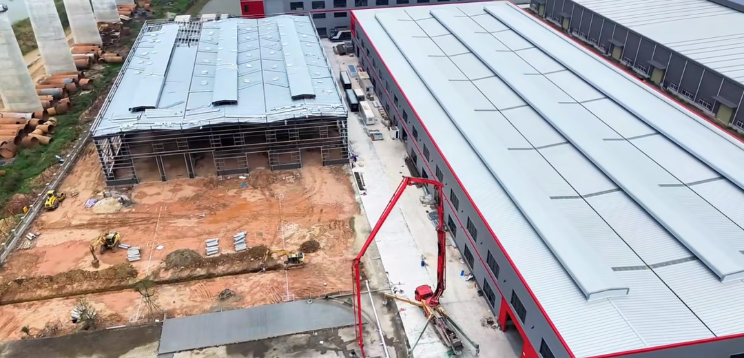 “目前,我们一期的1、2号厂房以及研发楼、宿舍楼已经建设完毕,二期厂房正同步开展。”