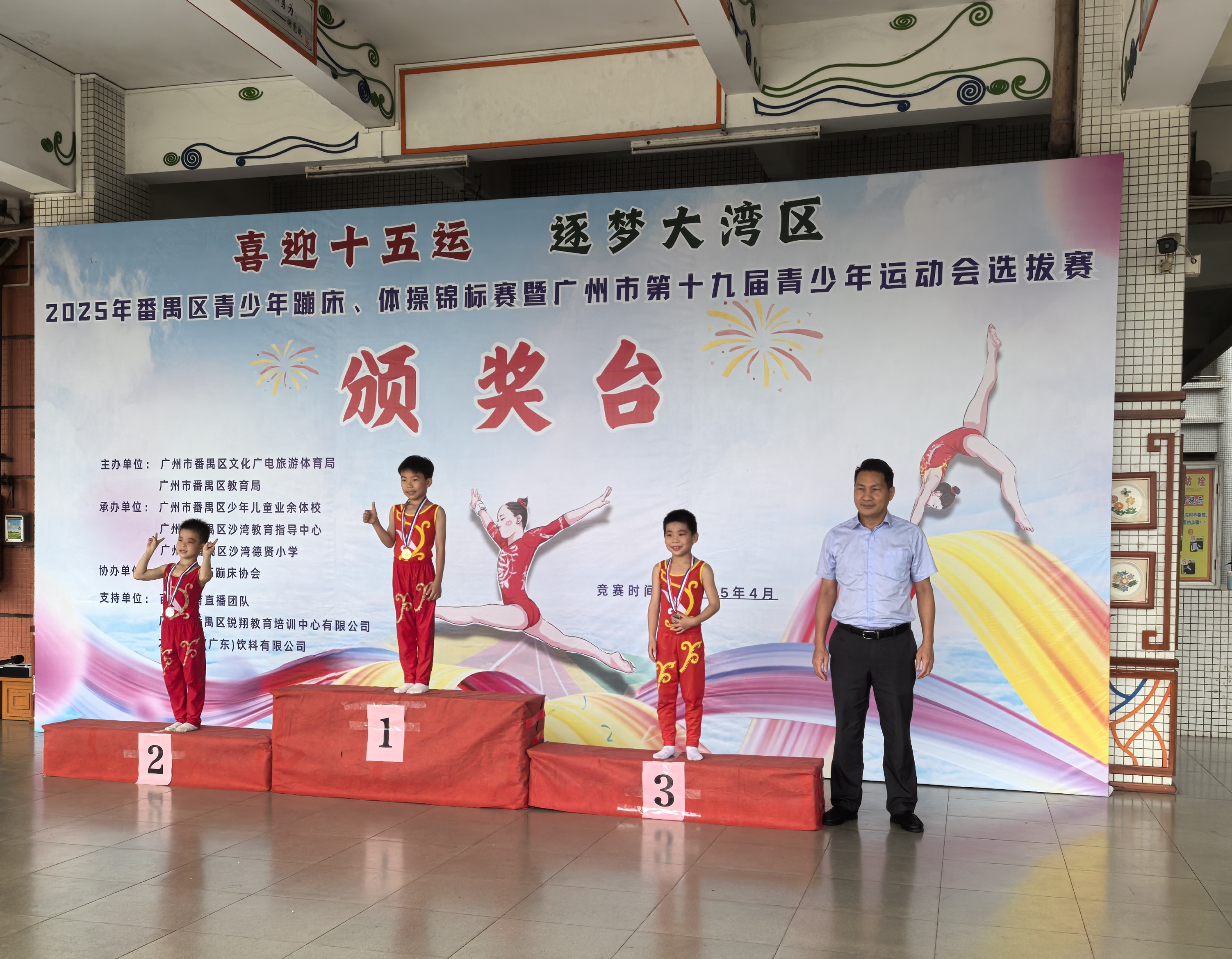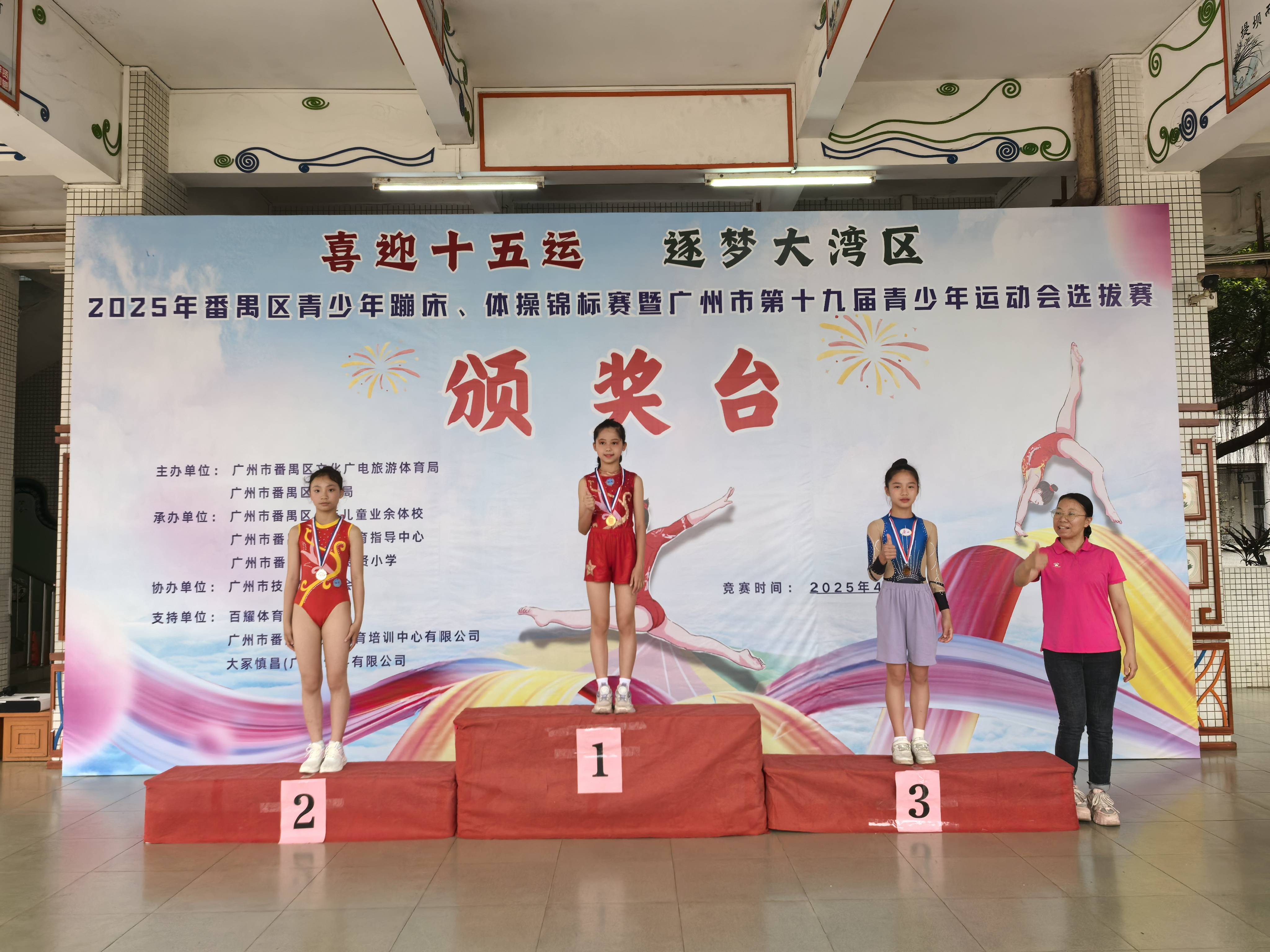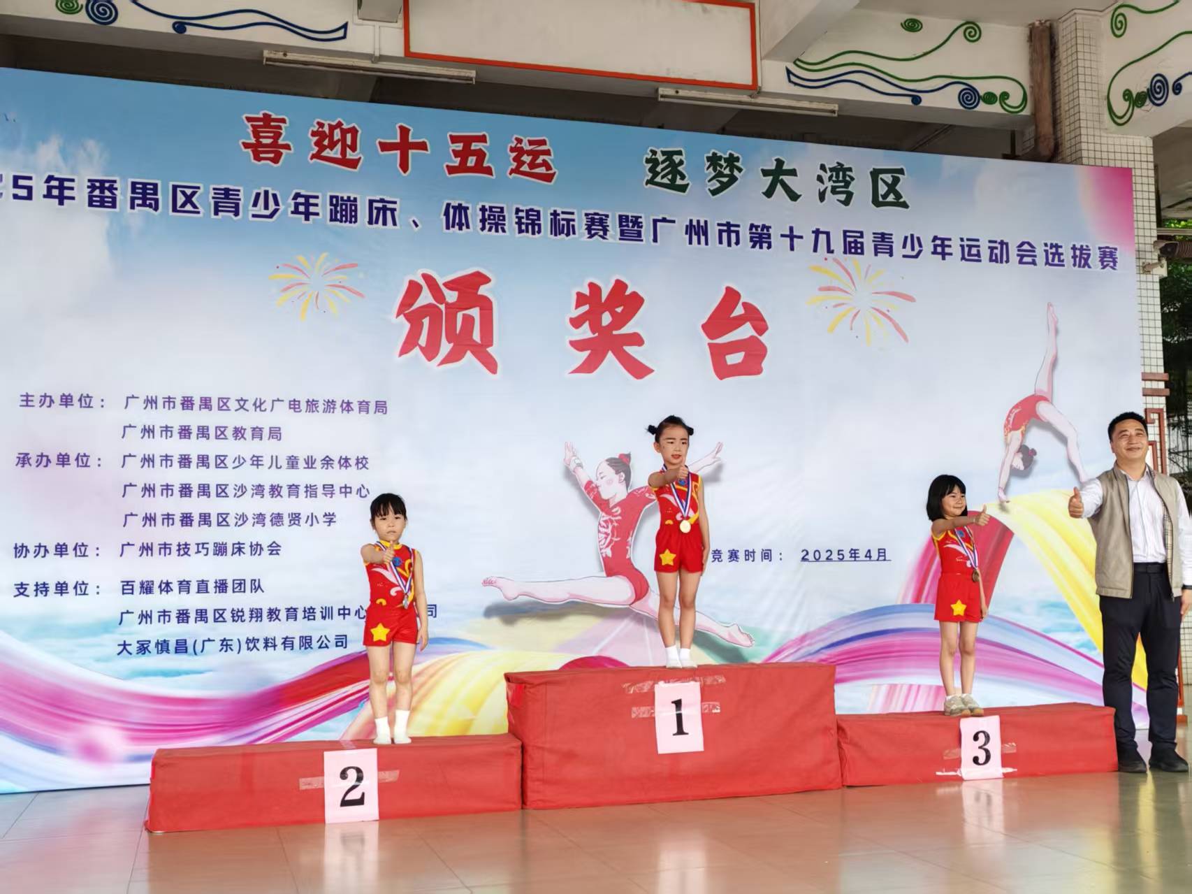 经过激烈角逐,德贤小学以27金25银14铜、团体总分974分的绝对优势登顶中小学组榜首。校长李文海在接受采访时表示:“学校自2019年与番禺体校共建训练基地以来,已形成‘普及+提高’的梯队培养模式。我们将蹦床纳入校本课程,每周开设两节必修课,同时选拔苗子进入校队进行专业训练。”他特别提到,此次赛事中涌现的30多位优秀学生上送区级体校”,正是从学校“蹦床社团”成长起来的明日之星。