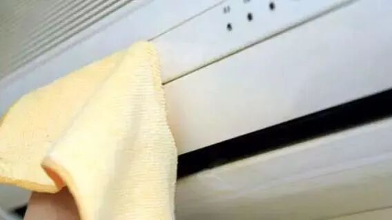 用湿抹布擦拭空调的外壳和其他裸露部分。