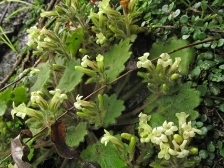 丹霞山阴湿崖壁上自然生长的丹霞小花苣苔植株。