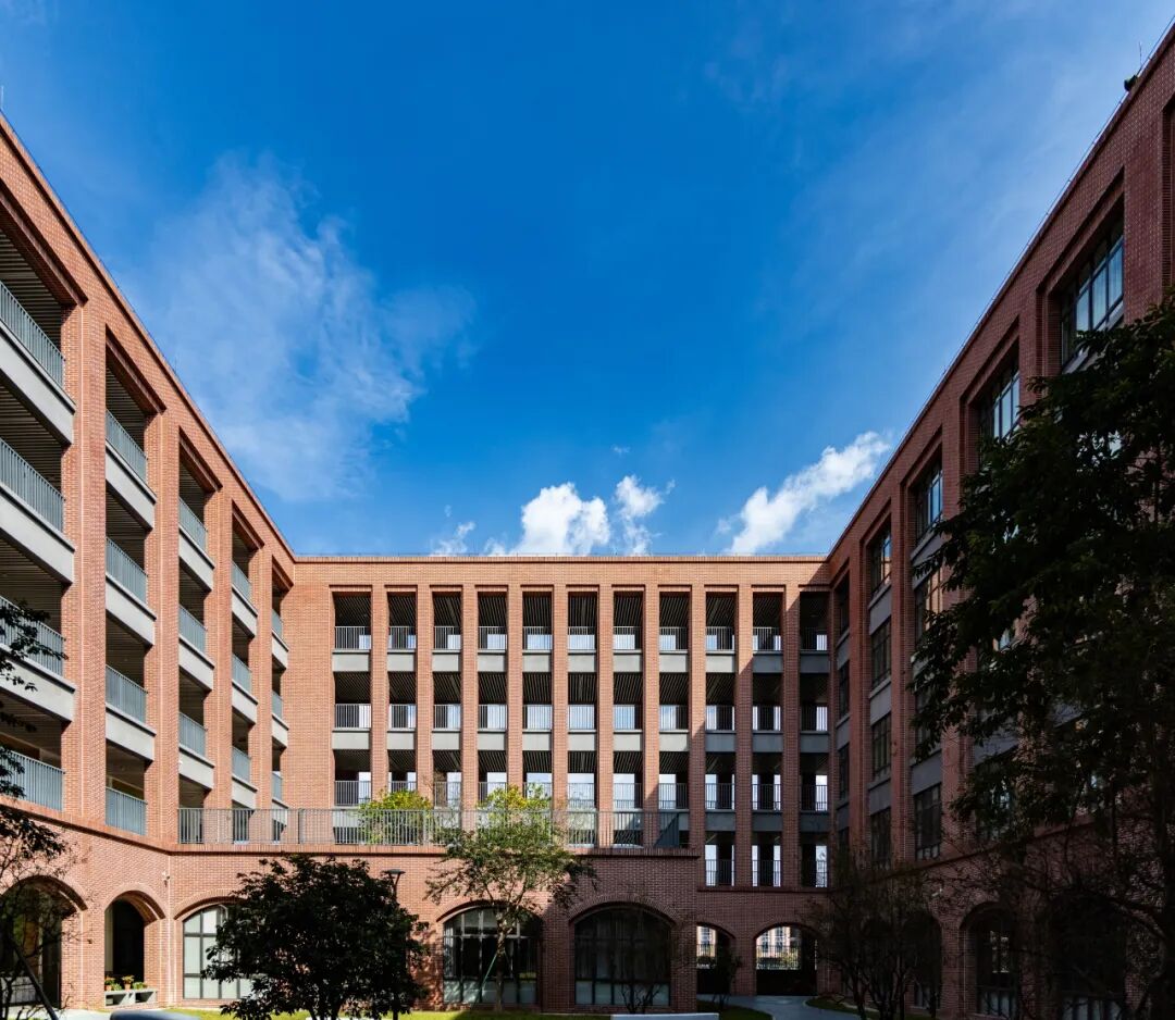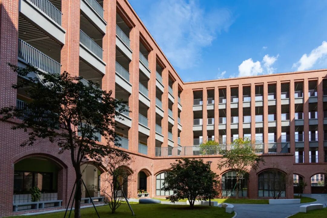 学校占地近150亩,由国内顶尖设计团队——浙江大学建筑设计院规划设计,校园环境简欧风格,红色楼宇与明媚轩窗相映成趣,庭院连廊间书声琅琅,营造出一种宁静而雅致的学习氛围。